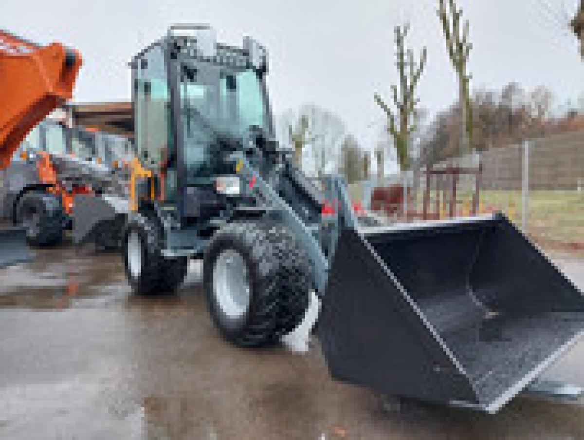 Radlader m. Strassenzulassung; Ausstattung Standardschaufel ohne Zähne sowie Palettengabel.