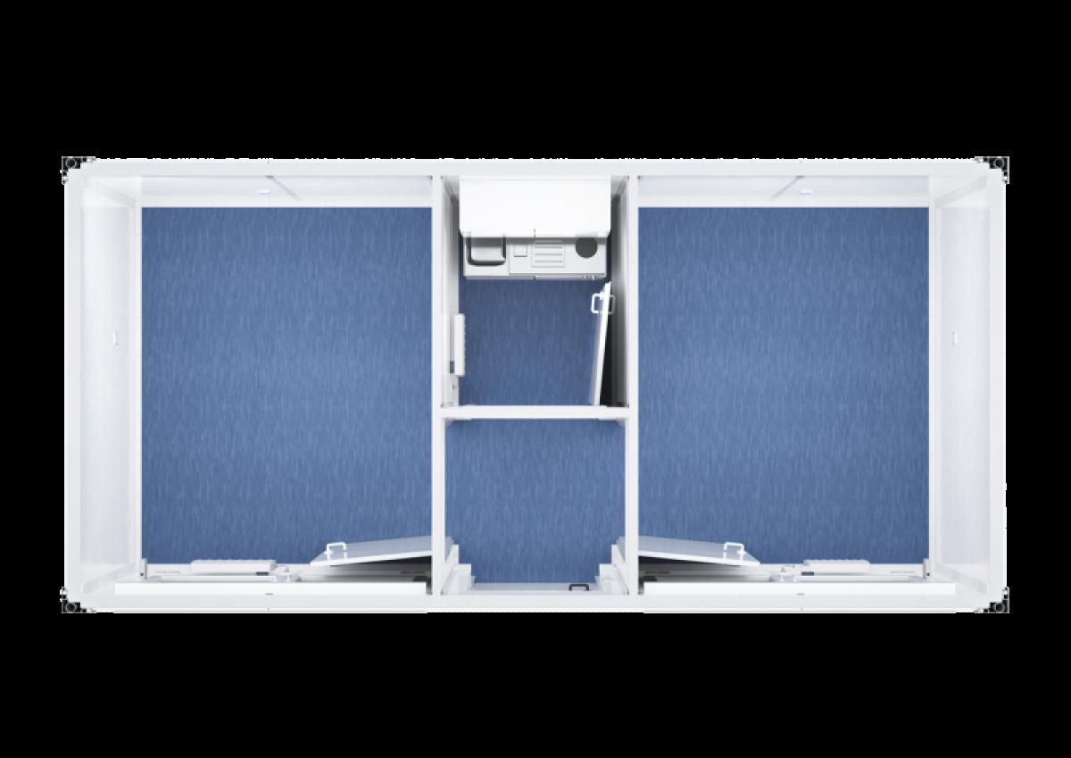 Der Raumcontainer 6 x 3 m bietet mit Trennwand und Windfang einige Extras. Zum einen erhalten Sie durch die größere Grundfläche ein Plus an Spielraum für Ihr Projekt. Zum anderen ermöglicht ein Raumteiler die besonders effektive Nutzung des Containers. Durch die Trennwand entstehen zwei separate Räume. Zusätzlich verfügt das Modell über einen großzügigen Windfang, der Schutz vor Durchzug und kalter Luft bietet. Die weitere Innenausstattung richtet sich ganz nach Ihren Vorstellungen. BAP-Leuchten, Mehrfachsteckdosen und magnetische Wandelemente ermöglichen beispielsweise eine komfortable Nutzung als Büroraum. Durch seine Standard-Bauweise lässt sich der 20-Fuß-Container problemlos in Containeranlagen integrieren.