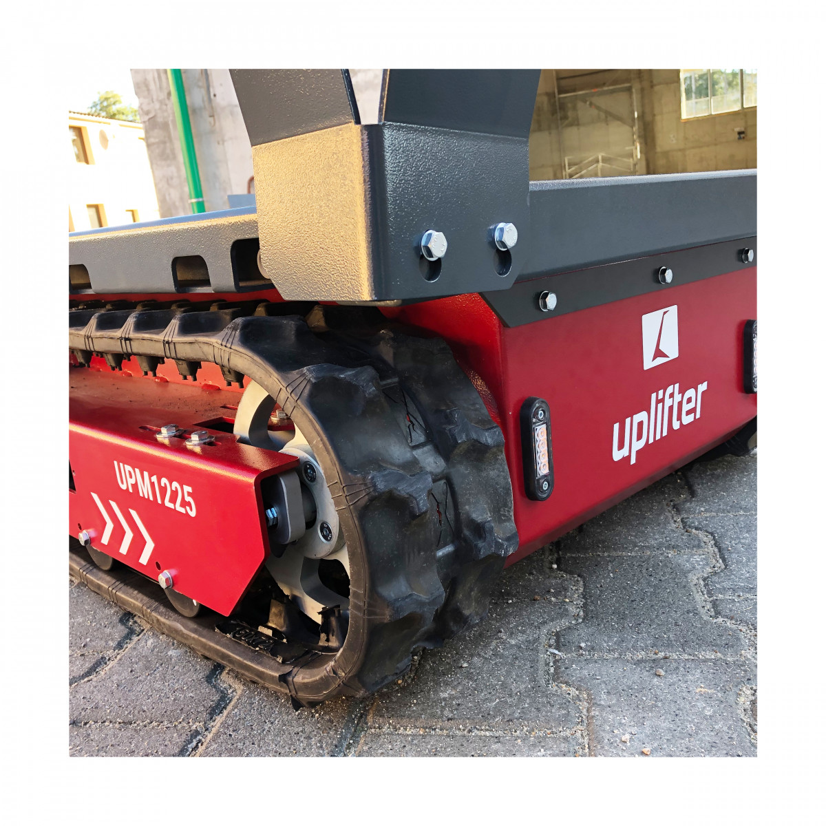 Leiser, höher und günstiger – der Uplifter UPM1225 revolutioniert den Markt unter den Raupen-Transportplattformen. Die Uplifter Entwicklungsabteilung hat mit dem Uplifter Mover ein Gerät für den Lastentransport konzipiert, das ein bestes Preis-Leistungsverhältnis garantiert. Der Uplifter Mover ist im Elektro-Fahrbetrieb besonders geräuscharm und kann somit ideal in Innenräumen und lärmberuhigten Zonen eingesetzt werden. Dank starkem E-Raupenantrieb und extra viel Bodenfreiheit ist dieses Gerät mehr als nur geländegängig und kann bisher nicht überwindbare Hindernisse problemlos bewältigen; sogar Steigungen bis zu 45° sind möglich. Die vollproportionale Fernsteuerung stellt sicher, dass das Lastenfahrzeug sehr feinfühlig gesteuert werden kann; kleine Abweichungen können durch dosierte Ruderausschläge ruckfrei kompensiert werden und punktgenau gesteuert werden, so dass die zu transportierenden Güter keinen Schaden nehmen. Die Bedienung ist intuitiv, ein reibungsloser und vollproportionaler Betrieb des Geräts ist garantiert. Wichtige Maschineninformationen wie der Batterieladezustand, werden im Fernsteuerungssystem angezeigt.