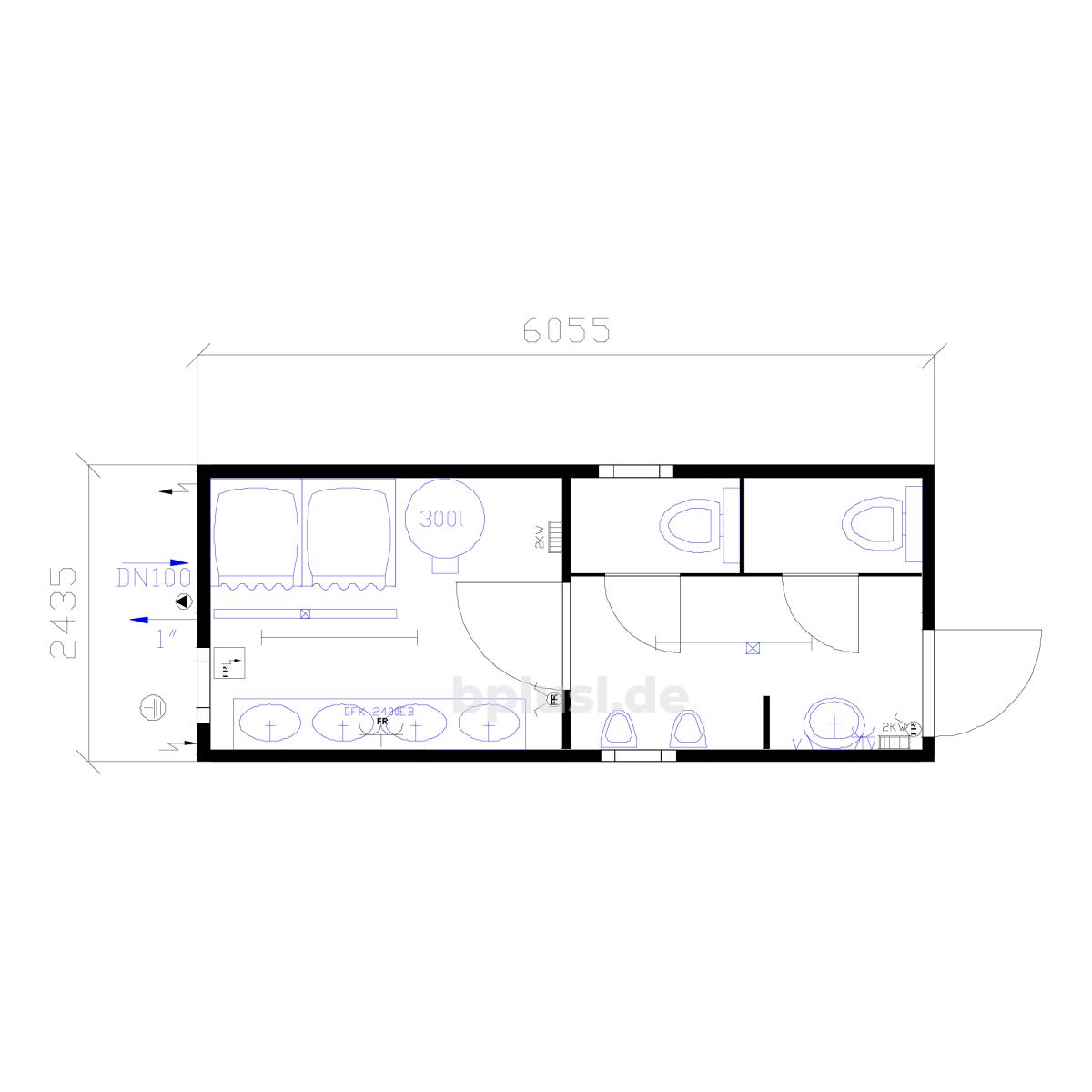 Für: Sanitärcontainer Typ 20’ / 6 m (SA20) – Standardausführung