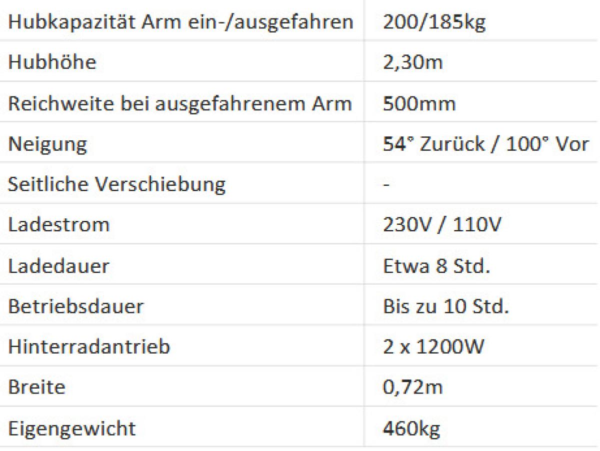 | Hebehöhe | 230 cm |