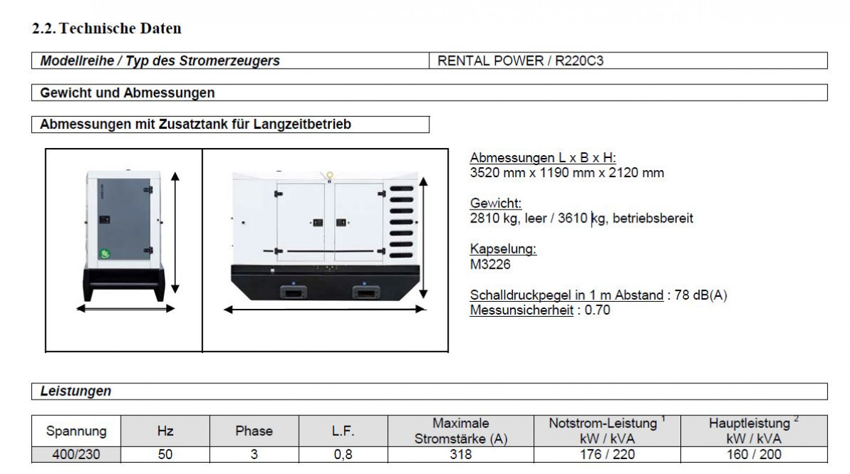 Für: Stromerzeuger mieten Stromaggregat SDMO R220C3
