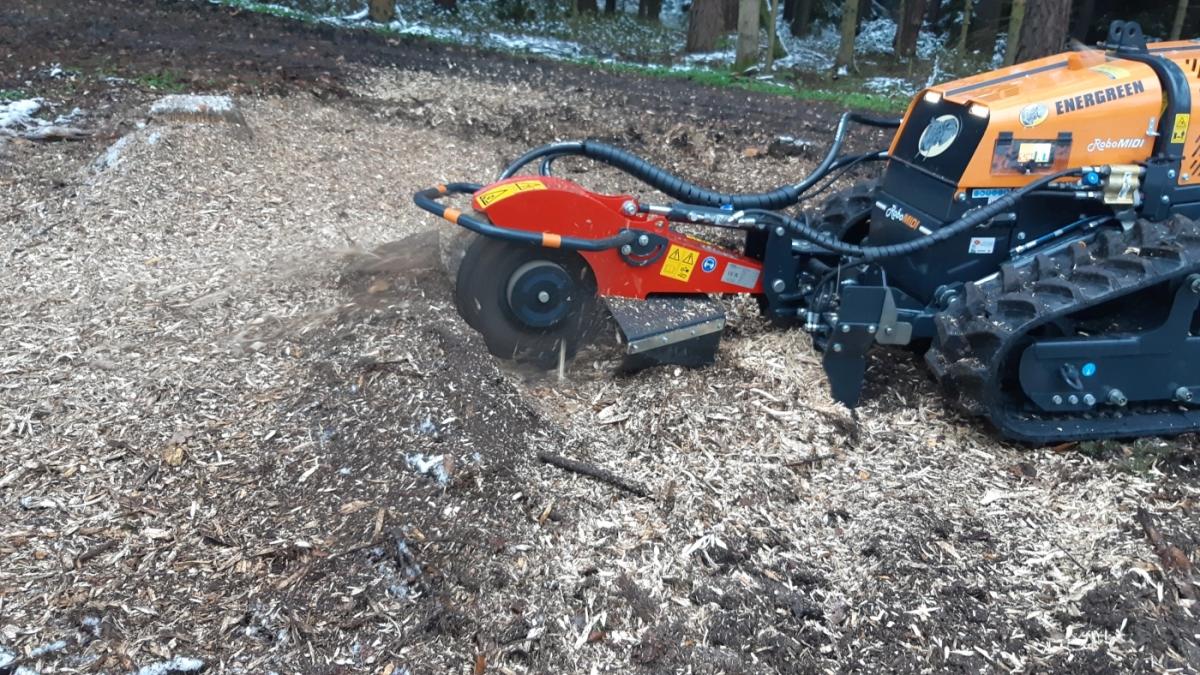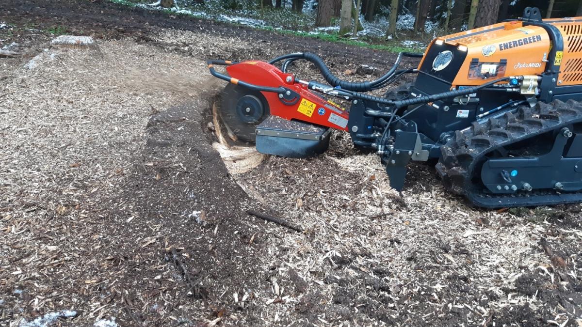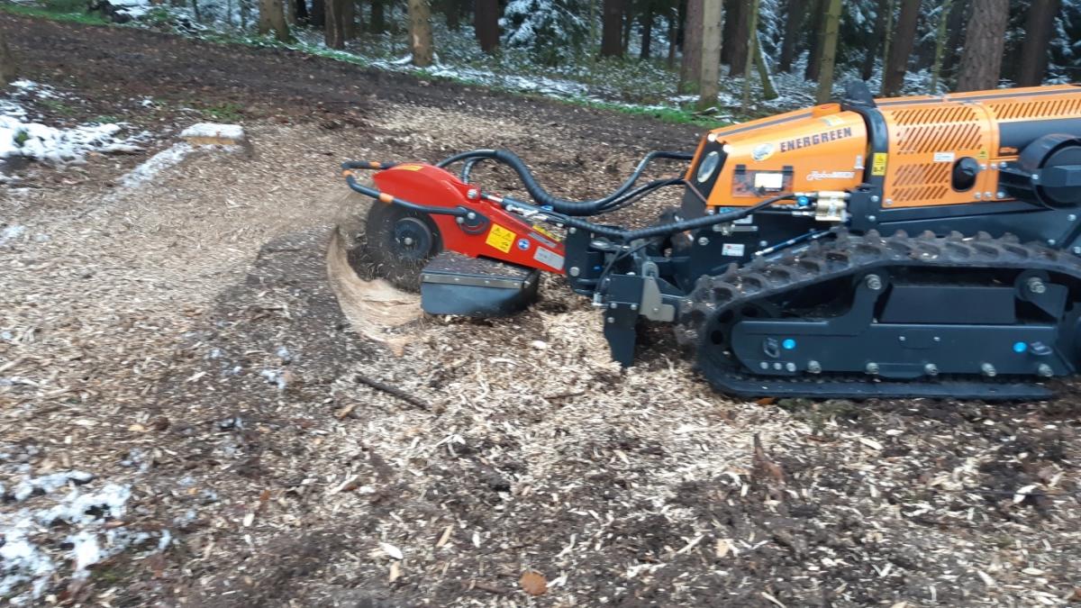 Baumstumpffräse Stubbenfräse für RoboEvo / Midi / Max / PLUS Anbaugerät für Energreen Raupen