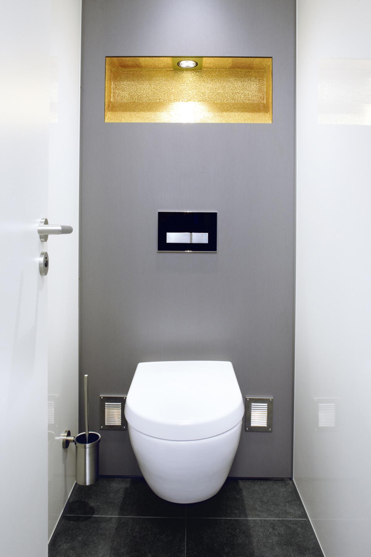 Besonderes Highlight ist der große geneigte Spiegel, der eine Ganzkörperansicht erlaubt und in Kombination mit dem beleuchteten Kosmetikspiegel keine Wünsche offen lässt. Durch raumhohe Wände und Türen sind die Nutzerinnen in den Einzelkabinen perfekt abgeschirmt. Das speziell für die TOI TOI® Superior Line Sanitärcontainer entwickelte sanfte Gold-Light sorgt für eine besondere Atmosphäre. Dezente Hintergrundmusik lässt die Nutzerin das Geschehen um sie herum für einen Moment vergessen.