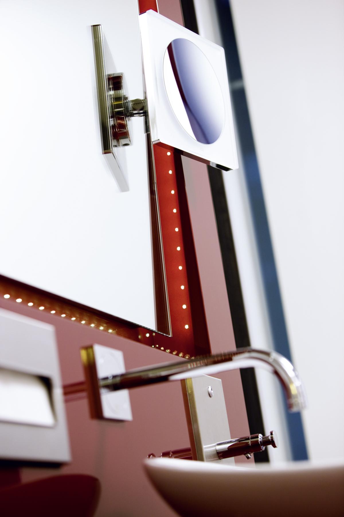 Design und Funktionalität perfekt vereint: Die weich abgerundeten Formen von Waschbecken und Armaturen setzen einen Kontrapunkt zu den puristisch geraden Linien des Umfelds. Bis ins letzte Ausstattungs-Detail entspricht alles dem exklusiven Ausstattungskonzept und vermittelt der Nutzerin: Wir haben verstanden.