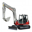 Takeuchi TB 290 Kompaktbagger, Einsatzgewicht 9000 kg, Grabtiefe 4,20 m, Überladehöhe 5,20 m, Höhe 2,58 m, Laufwerksbreite 2,20 m, Motorleistung 51,4 kW.