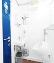 Größter Komfort auf kleinstem Raum: Mit den qualitativ hochwertigen Oberflächen und Sanitärkomponenten, der dezenten Beleuchtung und dem Fußboden in Holzoptik wird der TOI® ECO WC-TRAILER S auch anspruchsvollen Gästen gerecht. Ob im Damen- oder Herrenabteil – die Ausstattung lässt keine Wünsche offen. Neben den Wand-WC und Waschbecken findet sogar ein zusätzliches Urinal Platz.