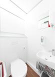 Größter Komfort auf kleinstem Raum: Mit den qualitativ hochwertigen Oberflächen und Sanitärkomponenten, der dezenten Beleuchtung und dem Fußboden in Holzoptik wird der TOI® ECO WC-TRAILER S auch anspruchsvollen Gästen gerecht. Ob im Damen- oder Herrenabteil – die Ausstattung lässt keine Wünsche offen. Neben den Wand-WC und Waschbecken findet sogar ein zusätzliches Urinal Platz.
