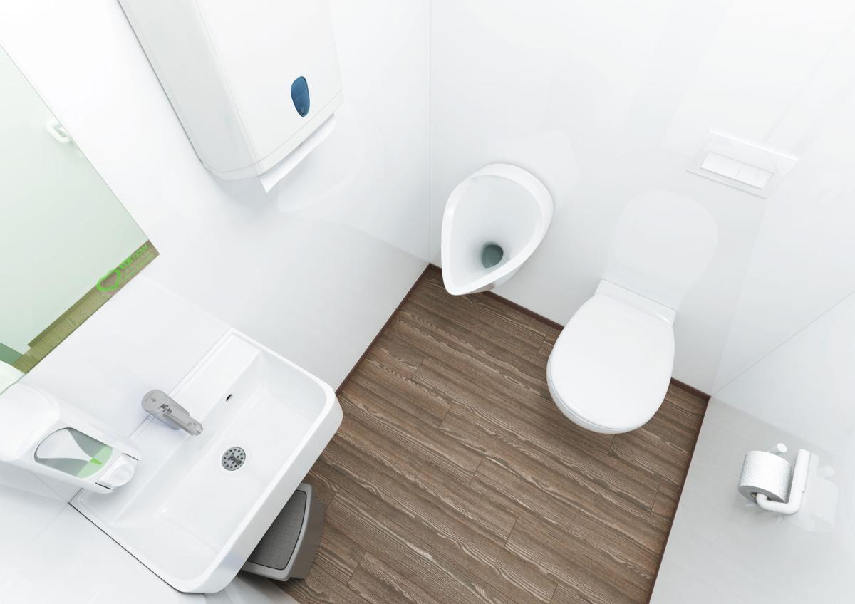 Nicht nur die ressourcenschonende Technik, auch die Innenausstattung des WC-Trailers überzeugt. Hochwertige Oberflächen und Sanitärobjekte, eine angenehme Beleuchtung und der Fußboden in edler Holzoptik sorgen dafür, dass sich anspruchsvolle Gäste wohlfühlen.