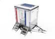 Der innovative WC-Trailer ist weitestgehend autark, sparsam und umweltfreundlich. Das auf dem Dach installierte Solarpaneel versorgt die Batterien bei ausreichendem Sonnenlicht mit Energie; Zeiten ohne Sonnenlicht können mit einer integrierten Batterie zwischenzeitlich überbrückt werden. Alternativ kann der Trailer auch direkt an ein Stromnetz gehängt werden*. Für geringen Stromverbrauch sorgt zudem ein automatisches Beleuchtungssystem, das sich je nach Bedarf ein- und ausschaltet.