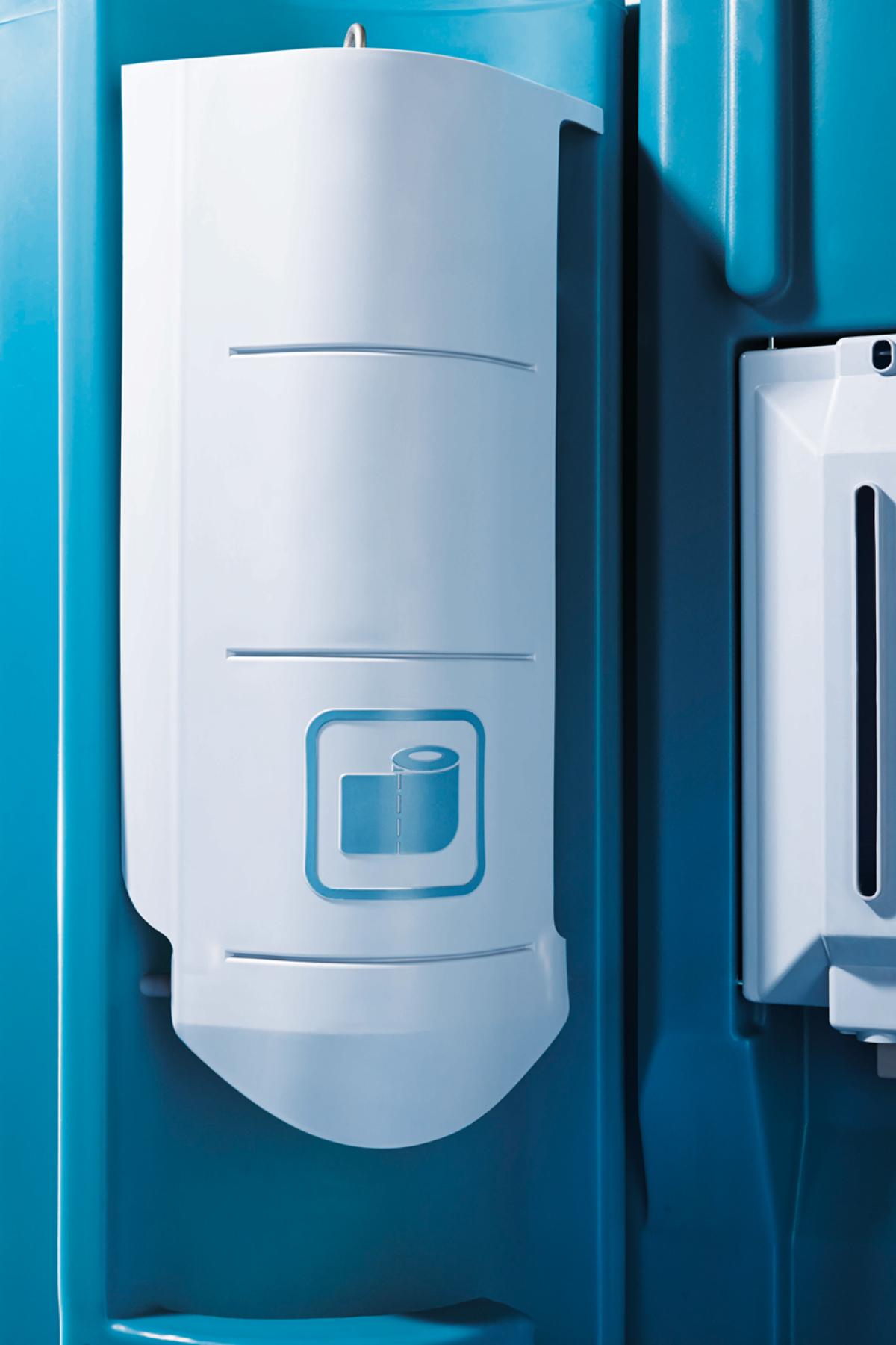 Mobil und alles drin. Zur Ausstattung gehören neben WC und Urinal ein großes Waschbecken. Die sehr hohen Anforderungen an Hygiene auf der Baustelle erfüllt die TOI® WATER UP mit dem besonders großzügigen Waschbecken optimal, dort kann sogar der gesamte Unterarm gewaschen werden. Die TOI WATER UP gewährleistet damit höchsten Mitarbeiterschutz. Das Ausstattungspaket runden ein 60-Liter-Wasservorrat mit stabiler Fußpumpe, ein Seifen- und ein Papierhandtuchspender ab. Mit dem zusätzlichen Handdesinfektionsspender ist Handhygiene garantiert.
