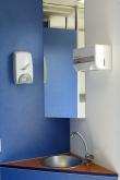 - 1 Waschbecken mit Kristallspiegel, Seifenspender, Handtuchspender, Abfalleimer.