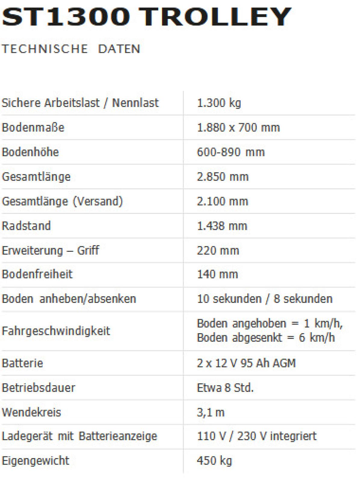 Transportplattform Radmobil Elektro SmartLift ST 1300 TROLLEY Nutzlast 1300 kg mieten