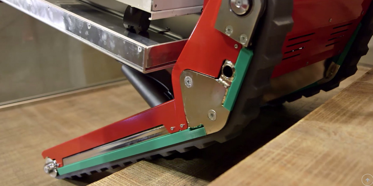 Die speziellen elektrischen Raupen hinterlassen weder Flecken noch Kratzer und können auf Bodenbelägen jeder Art fahren.