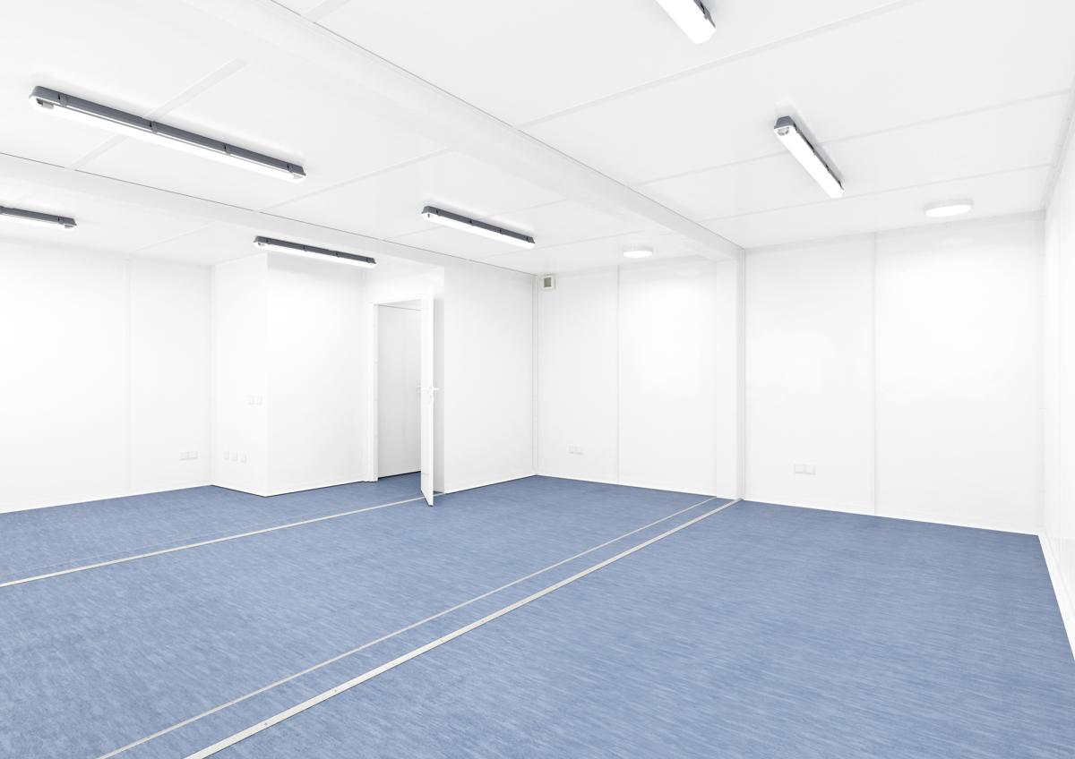 Alles unter Dach und Fach: Durch die intelligente Raumaufteilung steht die komplette Infrastruktur für Büro-Arbeitsplätze und Wohn-Unterkünfte zur Verfügung. Dazu zählen die bildschirmtaugliche Beleuchtung, Mehrfachsteckdosen sowie magnetische Wandelemente. Das separate Bad mit WC, Dusche und Waschbecken ist mit hochwertigen Markenprodukten ausgestattet und ebenso robust wie wartungsarm.