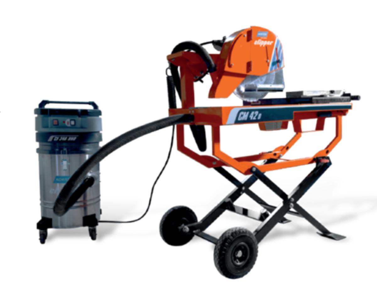 Die Norton Clipper CM42 D ist eine robuste und ergonomische Steinsäge, die speziell für Trockenschnitt-Anwendungen entwickelt wurde. Mit einem fortschrittlichen Staubkanalsystem sorgt diese Säge für ein saubereres, einfacheres und effizienteres Schnitterlebnis, wenn sie an den CV340 UNO Sauger angeschlossen ist. In Kombination ermöglicht die CM42 D einen leisen und angenehmen Trockenschnitt.