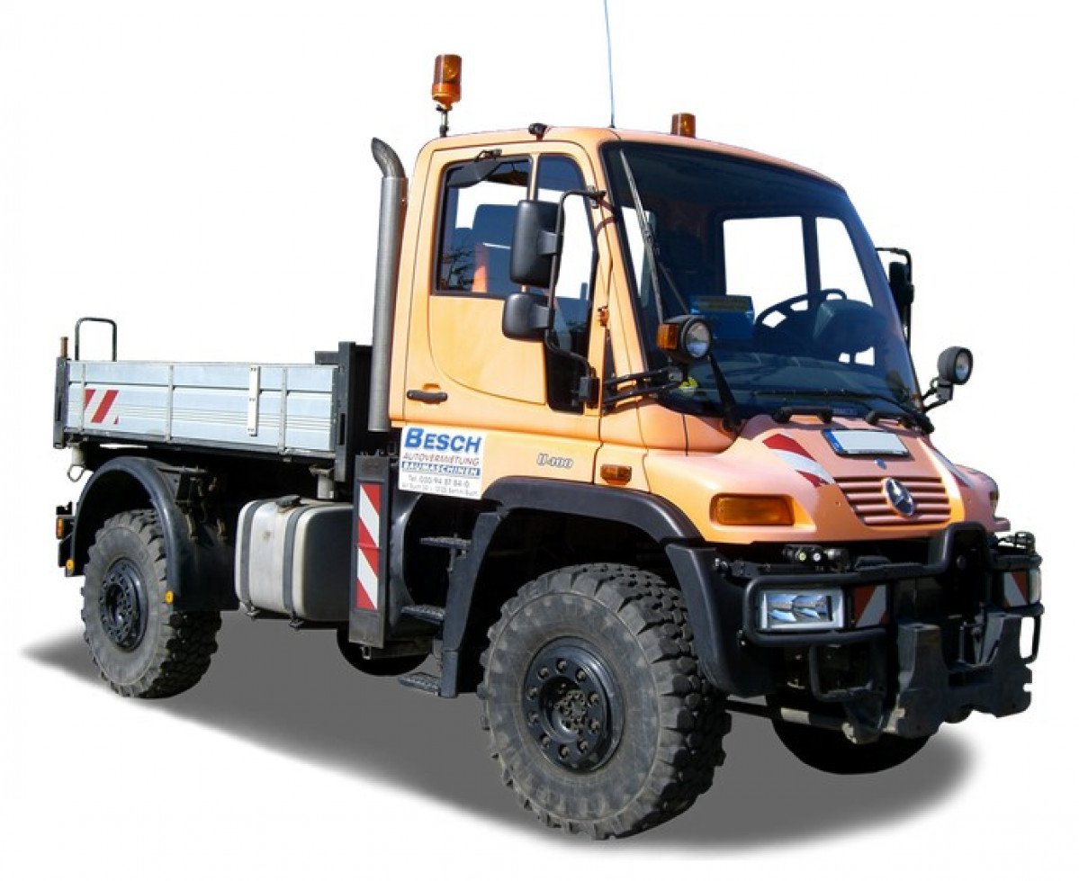 LKW MB UNIMOG zulässiges Gesamtgewicht 12.500 kg, Nutzlast 6.250 kg, Ladefläche Maße 2920 x 2060 x 500 mm, verf. Anhängerkupplungen Zentralachs- (bis 10.500 kg), Kugelkopfkupplung, Maulkupplung.