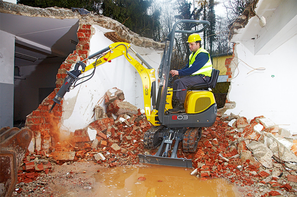 - Serienmäßige Einwege-Zusatzhydraulik: Ideal für den Betrieb des speziell abgestimmten Wacker Neuson Hydraulikhammers.