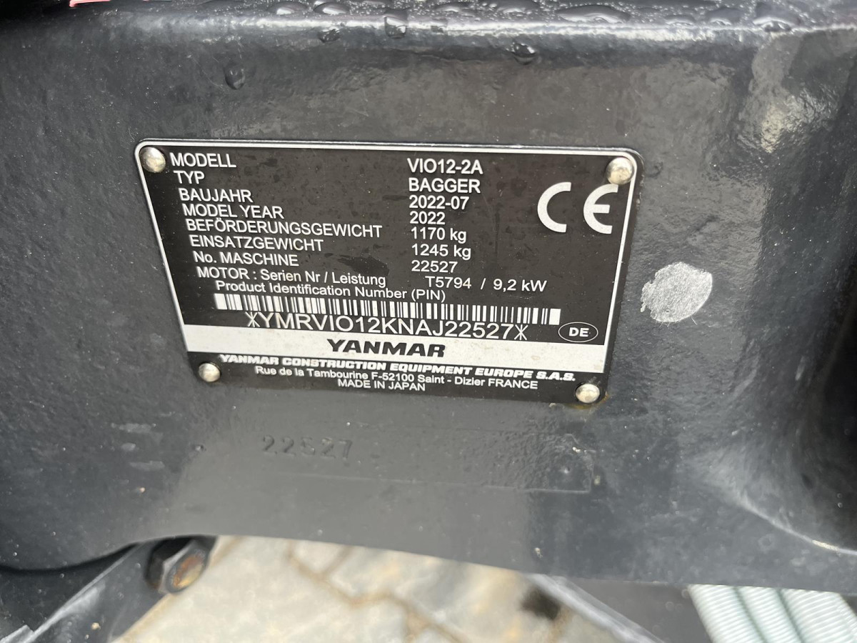 Yanmar ViO12-2A Kurzheck Minibagger, Gewicht: 1245 kg, Leistung: 9,2 kW, Breite 830 mm, Grabtiefe 195 cm.