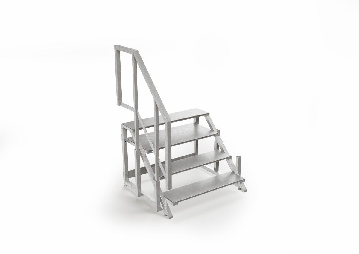 Die Abwassertanks stehen in zwei Versionen zur Verfügung: mit und ohne integrierte Treppe. Der Tank mit integrierter Treppe wird unterhalb des Sanitärcontainers installiert. Tank und Container werden so zu einer Einheit. Der Abwassertank ohne Treppe kann direkt unter den Sanitärcontainer gestellt werden. Um bequem in den Container zu gelangen, bieten wir in diesem Fall die passende Tanktreppe an.
