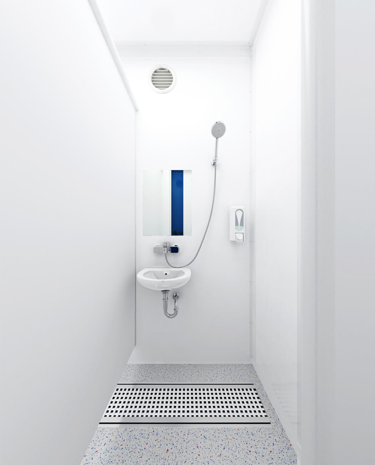 Ob Damen oder Herren – der Dusch-Container aus der Basic Line hat Platz für 10 Personen. Hier wird Raum besonders effizient genutzt. Ihr Vorteil: Ein optimales Preis-Leistungs-Verhältnis.