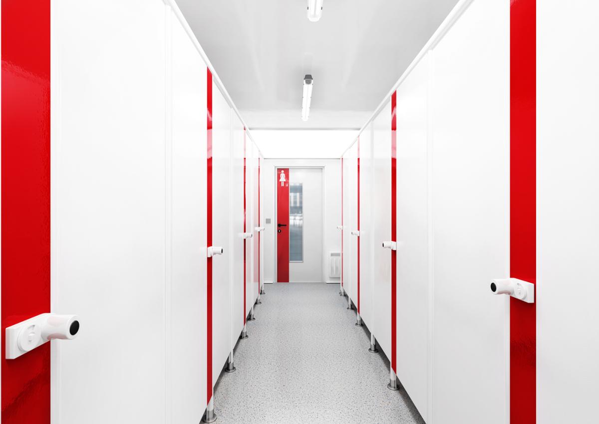 Durch das intelligente Raumkonzept des WC-Containers ist in den einzelnen WC-Kabinen für ausreichend Bewegungsfreiheit und Privatsphäre gesorgt. Verblendungen an den Wasserrohren beugen Schäden vor und vereinfachen den Reinigungsvorgang erheblich. Zusätzlich schonen unsere Wasserspar-Armaturen Ihr Budget und die Umwelt.