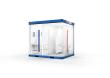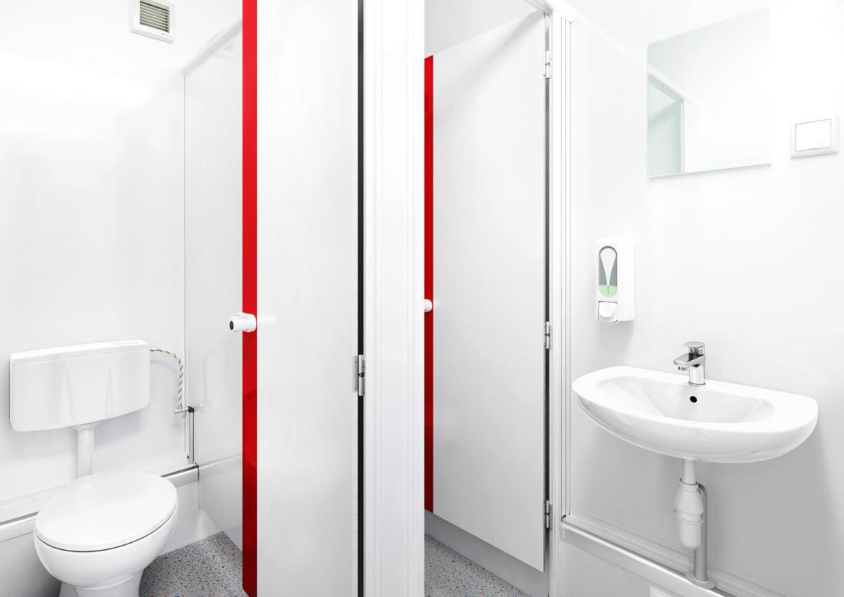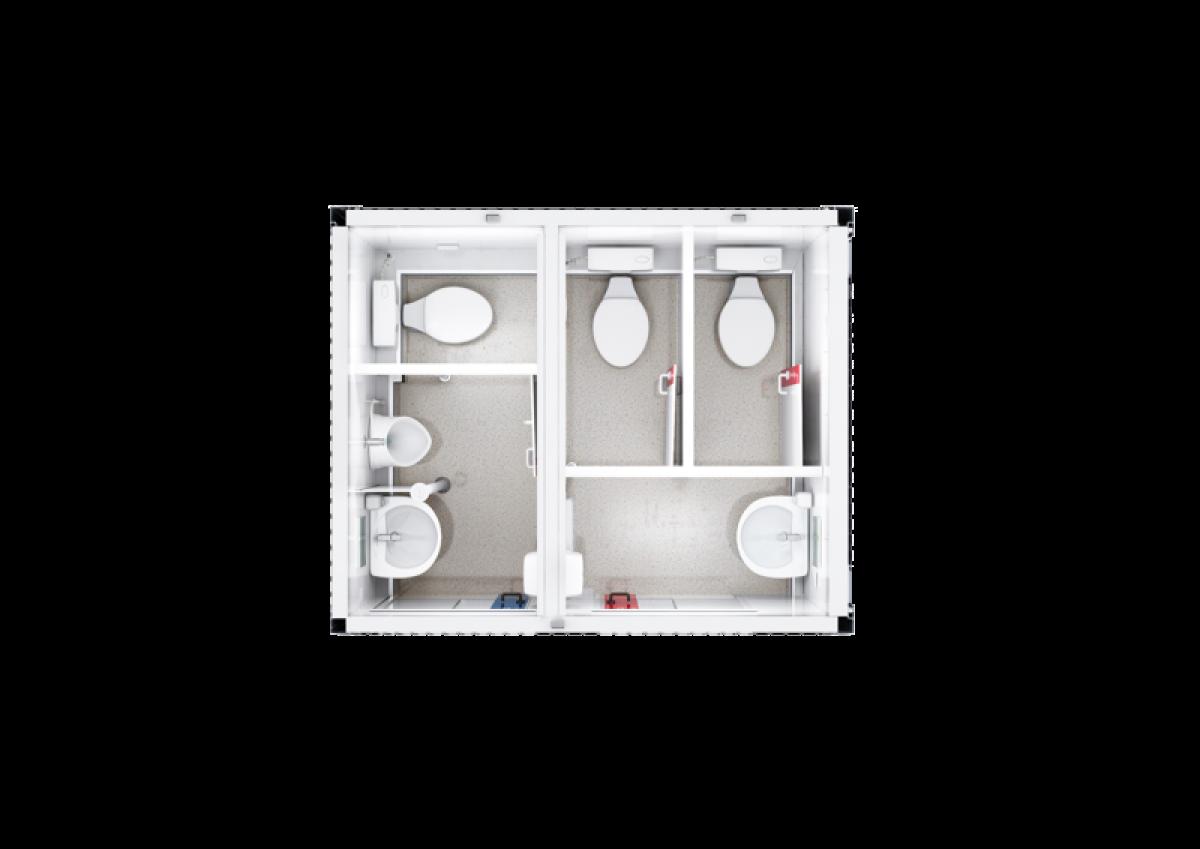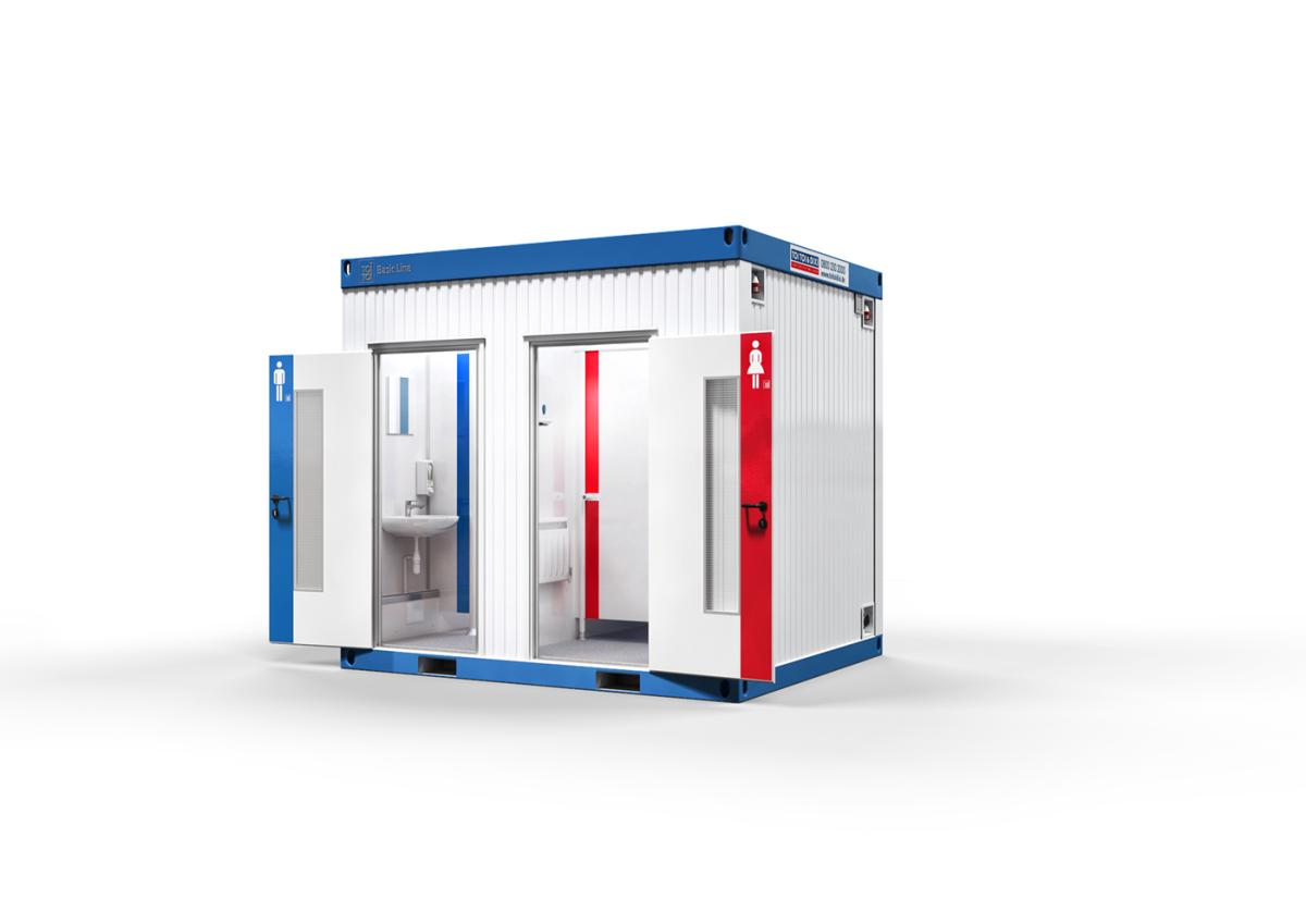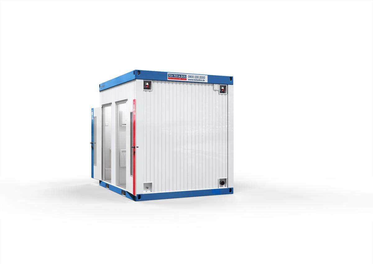 Praktisch im Quadrat: Der kompakte Basic Line Würfel-Container mit Damen- und Herren-Abteil bietet auf knapp sieben Quadratmetern Grundfläche insgesamt vier Personen Platz.