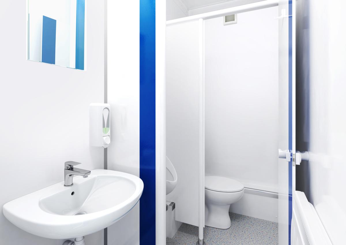 Durch das intelligente Raumkonzept spart der kompakte Toilettencontainer nicht nur Raum, sondern auch Kosten. Dabei ist für Damen und Herren alles vorhanden, was den Besuch angenehm macht – vom Seifen- und Papierhandtuch-Spender bis zur Heizung für kalte Tage. Auch dieses kleinste Modell der Basic Line WC-Container bietet eine moderne Optik, eine angenehme Beleuchtung und ist leicht sauber zu halten.