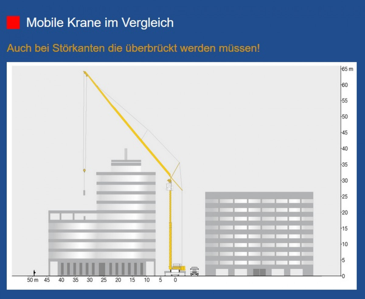 Der Mobile Baukran Liebherr MK88 ist ein sehr bewährter Mobilfaltkran auf 4-Achsen. Mit seiner Hakenhöhe von 30,2 m und Ausladung von 45 m reicht er über hohe Störkanten. Dadurch ist der MK88 prädestiniert für den Einsatz in dicht bebauten Innenstädten.