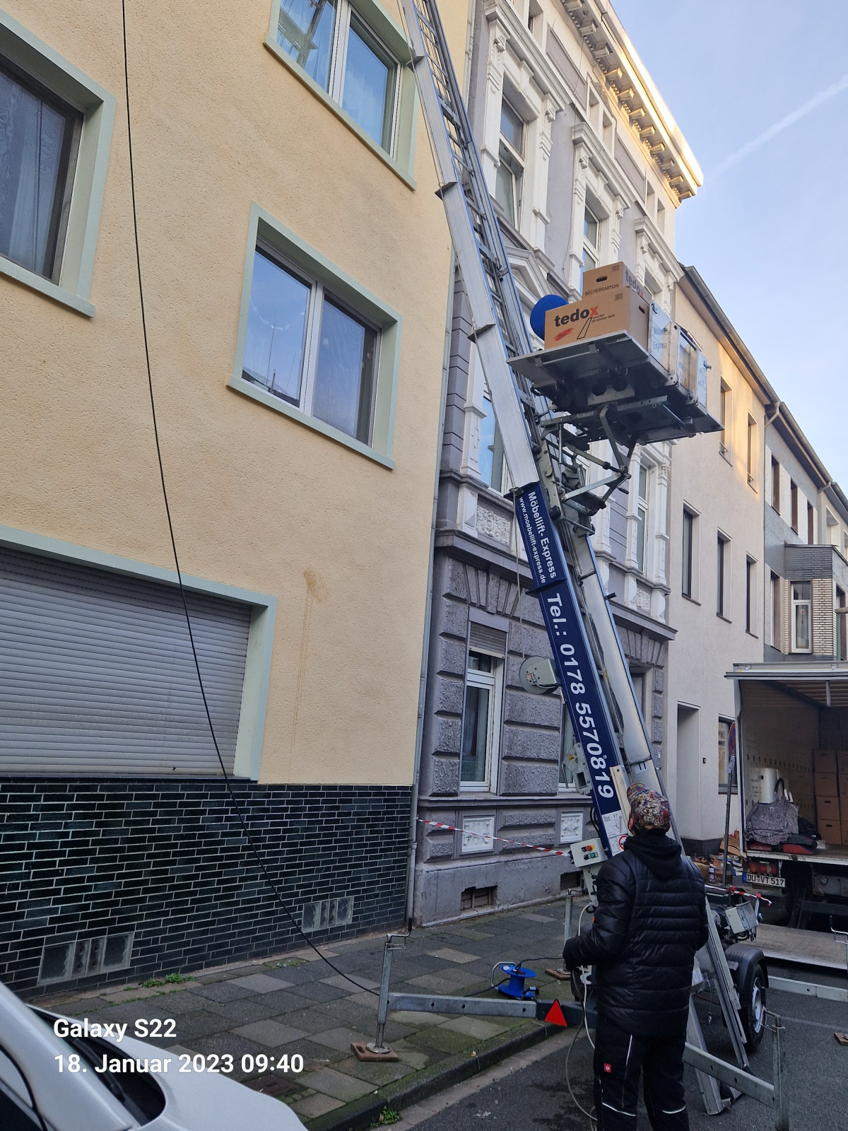 Schrägaufzug , Außenaufzug , Umzugslift, Arbeitshöhe 17,8 m mit Bedienpersonal