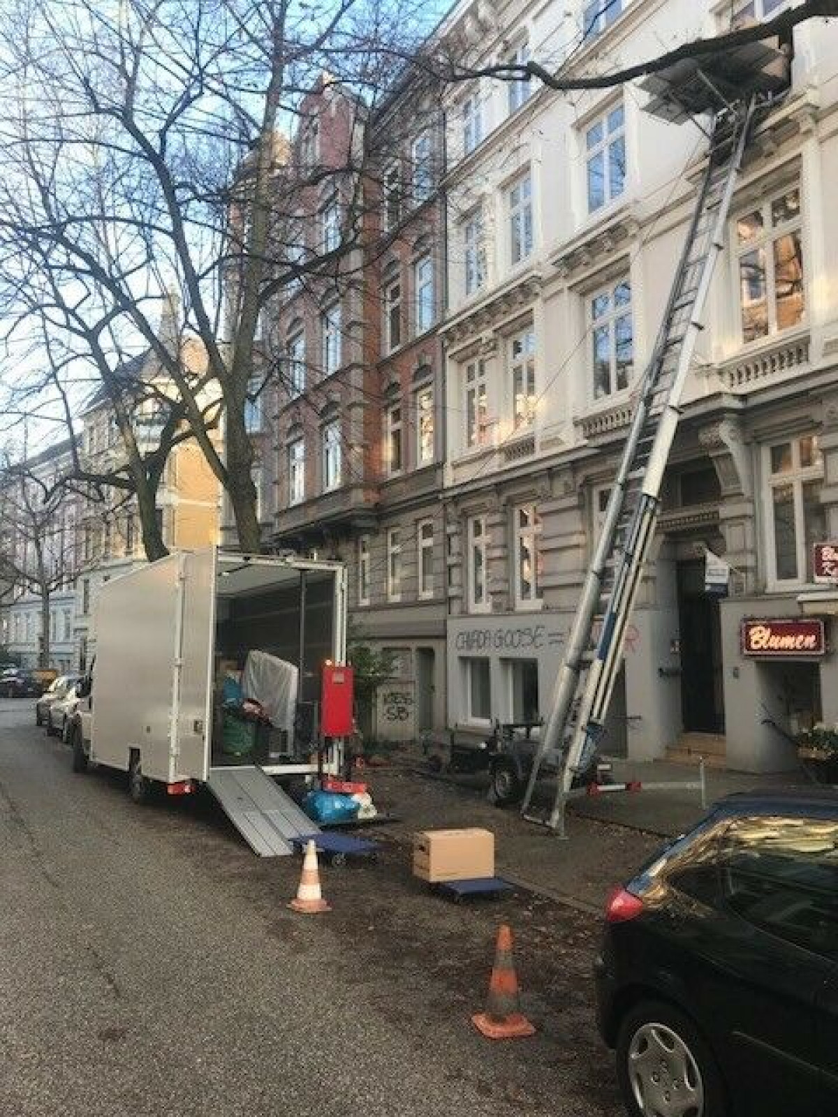 Auftragsplanung- / Ablauf - Schritt 1: Bitte senden Sie uns zuerst Bilder bzw. am Besten ein Video der Aussenfassade und / oder mit geöffneten Fenster / Balkontür nach unten, zu: per Signal-APP oder per IMessage - an: 01785687147 oder per Mail, an: info@JL-T.de; Achtung: wenn der Lift zB. hinter das Haus geschoben oder dort aufgebaut werden muss, bitte auch den kompletten Weg von der Strasse bis zum Aufstellort des Lifts abfilmen - um Störquellen auszuschliessen;Schritt 2: Nachdem wir die Videos / Bilder geprüft haben, dass der Lifteinsatz möglich ist - melden wir uns bei Ihnen für den weiteren Ablauf - dies geht auch sehr schnell wenn erforderlich.