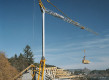 Kran POTAIN IGO 22, Höchstlast: 1800 kg; Max. Ausladung: 28 m; Spitzenlast: 850 kg; Hakenhöhe: 20 m; Drehradius: 2,0 m; Abstützung: 3,6 m x 3,6 m;