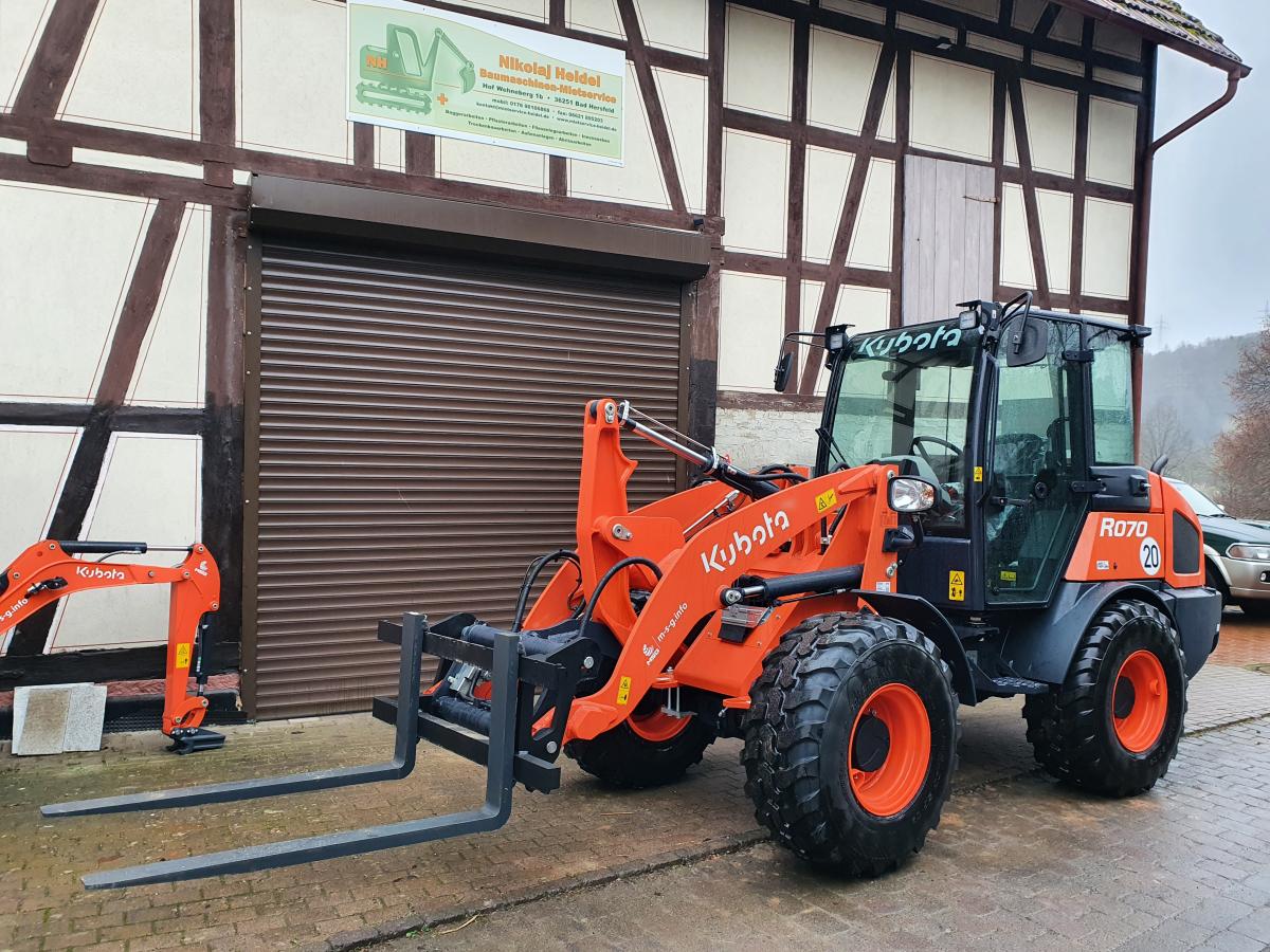 Radlader Kubota R070 ist ein leistungsstarker Radlader, der für verschiedene Anwendungen geeignet ist. Hier sind einige Details über das Fahrzeug: