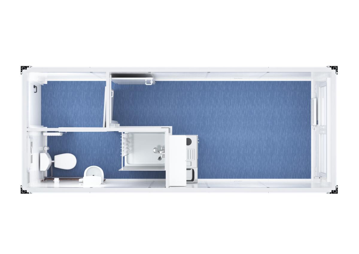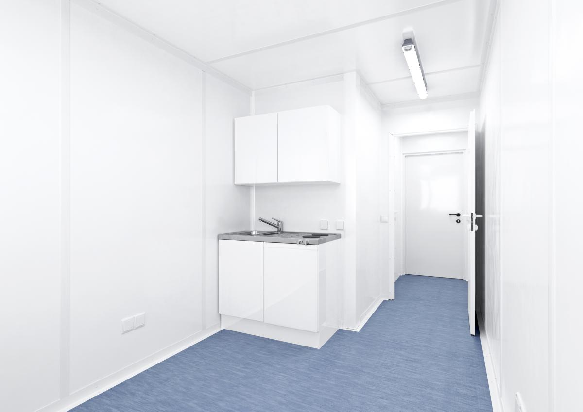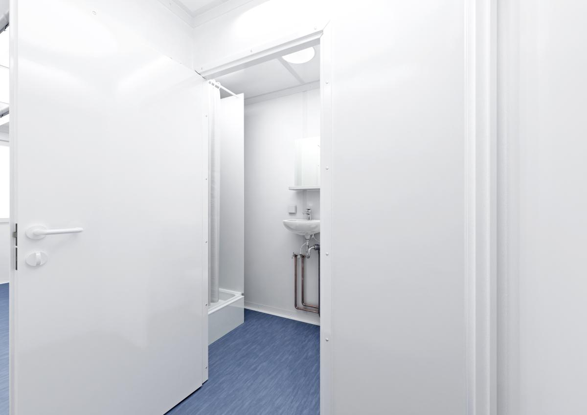 Der neue Standard-Raumcontainer mit WC, Dusche und Küche – Alles in einem.