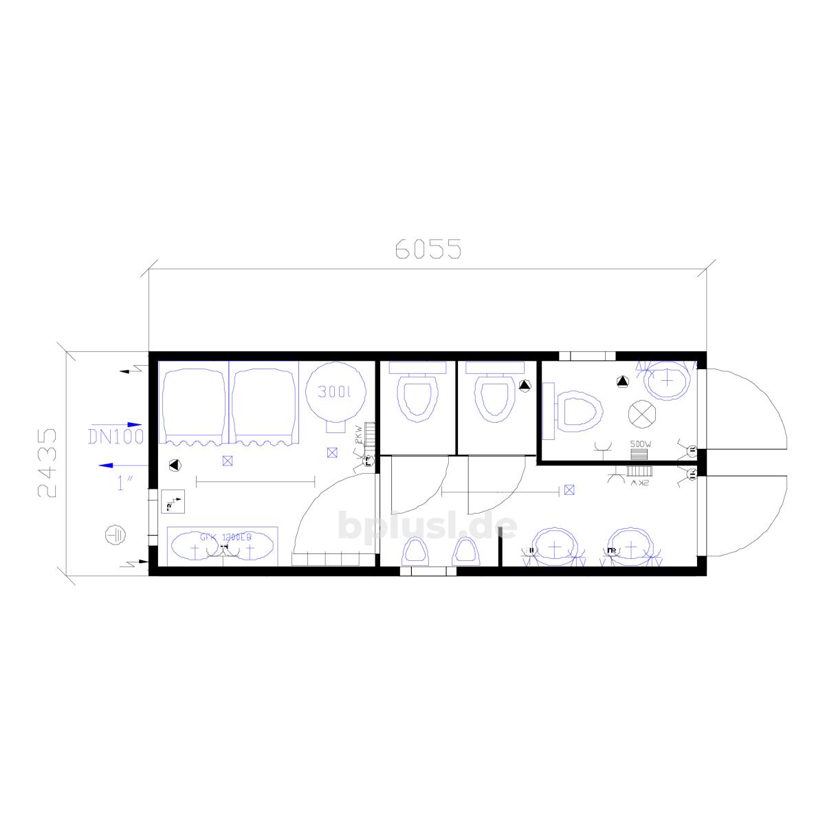 Sanitärcontainer 2get. (DBV) Typ 20ft / 6 m (SA20DBV) – Getrennte Ausführung