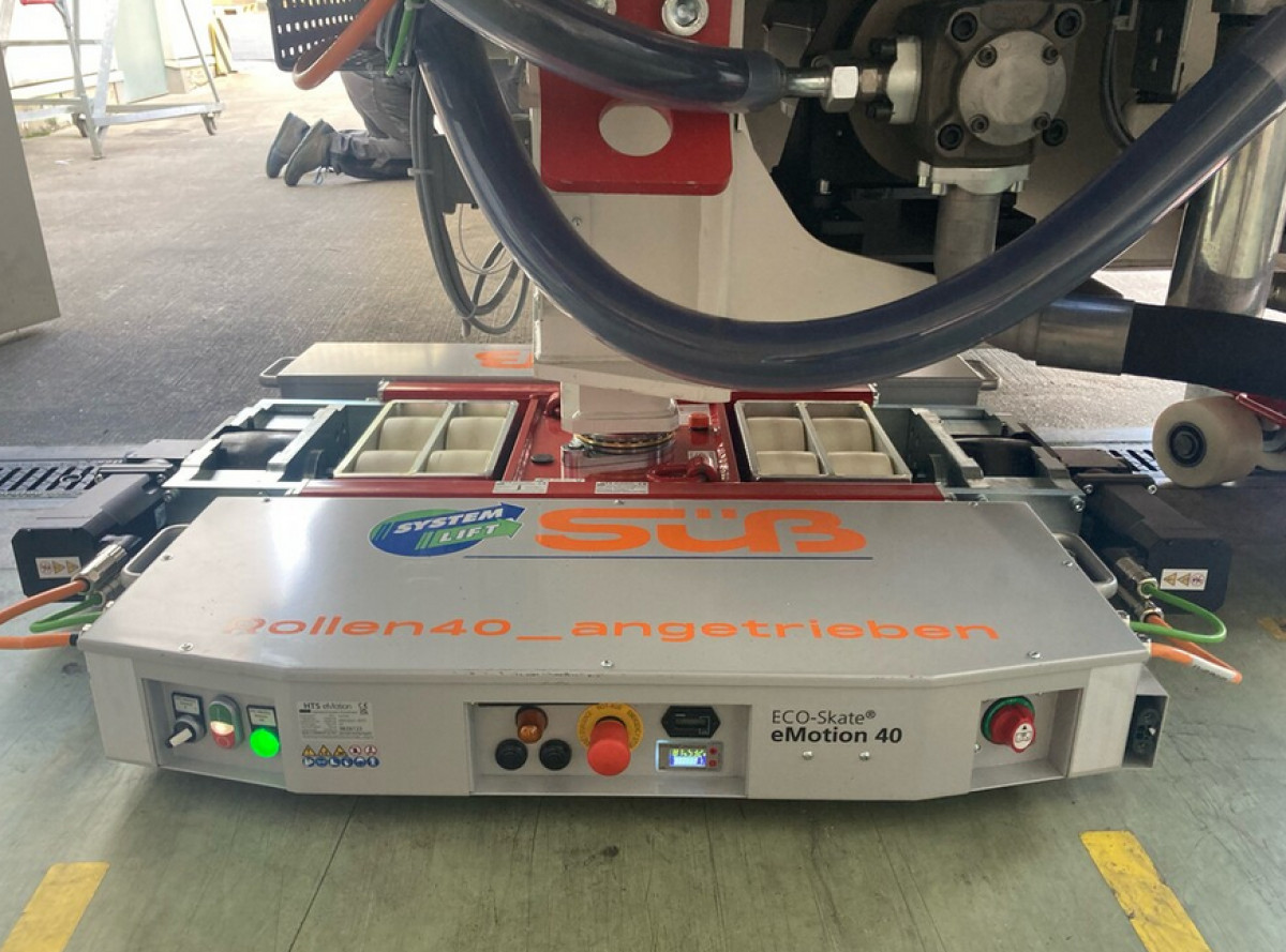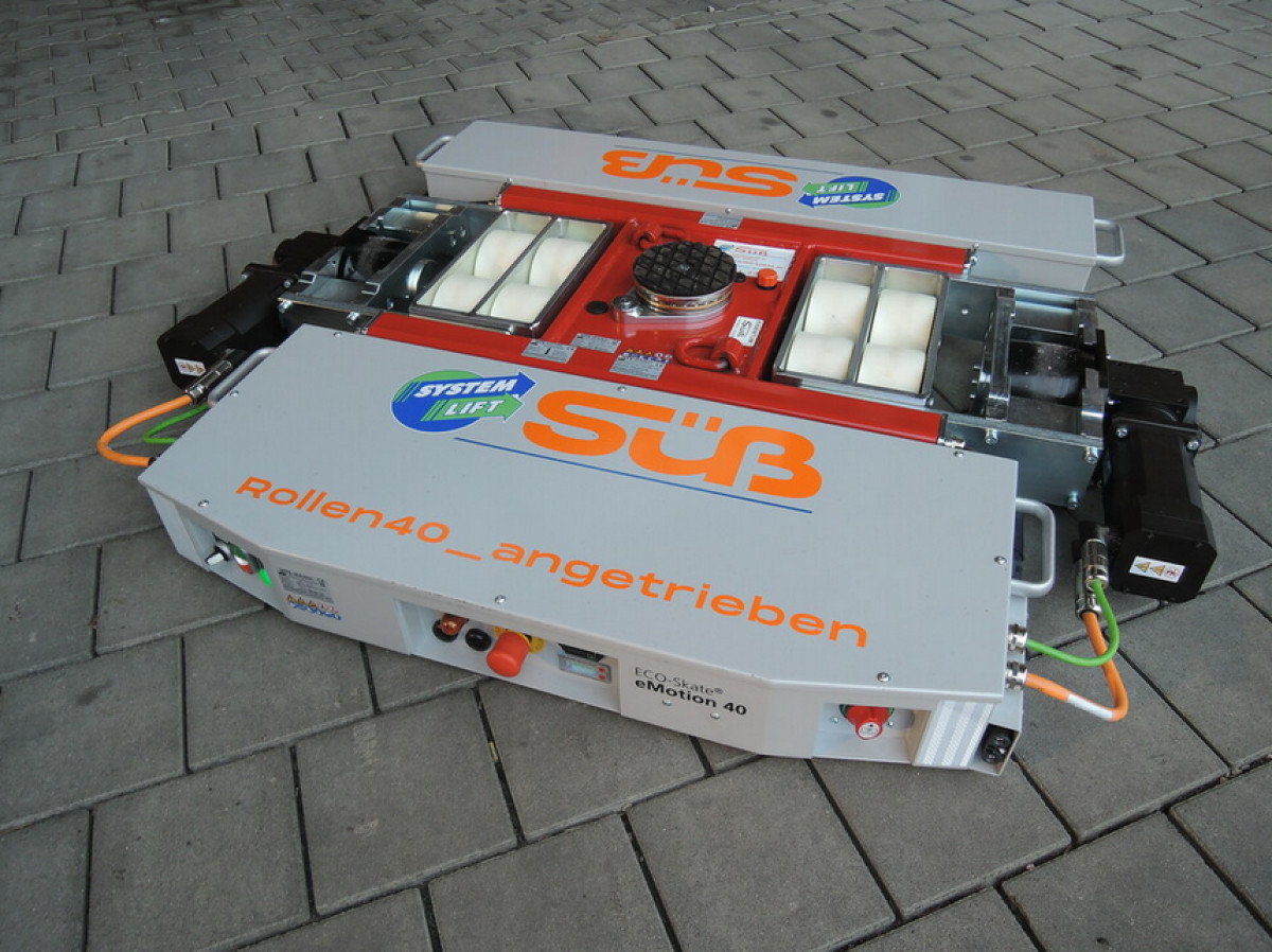 Schwerlast Transportfahrwerk HTS Transportsysteme POWER-Skate® XL 20-40 Angetriebenes Fahrwerk - Rollen 40, bundesweite Vermietung Tragkraft 40.000 kg, Elektrisch angetriebenes Fahrwerk mit geringer Einschubhöhe !!! Folgendes zeichnet die selbstfahrende Transportfahrwerke der Serie POWER-Skate® aus: Kompakte Bauweise mit geringen Außenmaßen Einfaches Lenken und konstanter Geradeauslauf durch direkt proportionale Steuerung mit Ein-Joystick System Leistungsstarke digital angesteuerte Syncronmotoren Mit allen Fahrwerken der ECO-Skate® XL-Serien kombinierbar Ideal für den Einsatz unter beengten Platzverhältnissen, da das Zugfahrzeug entfällt.