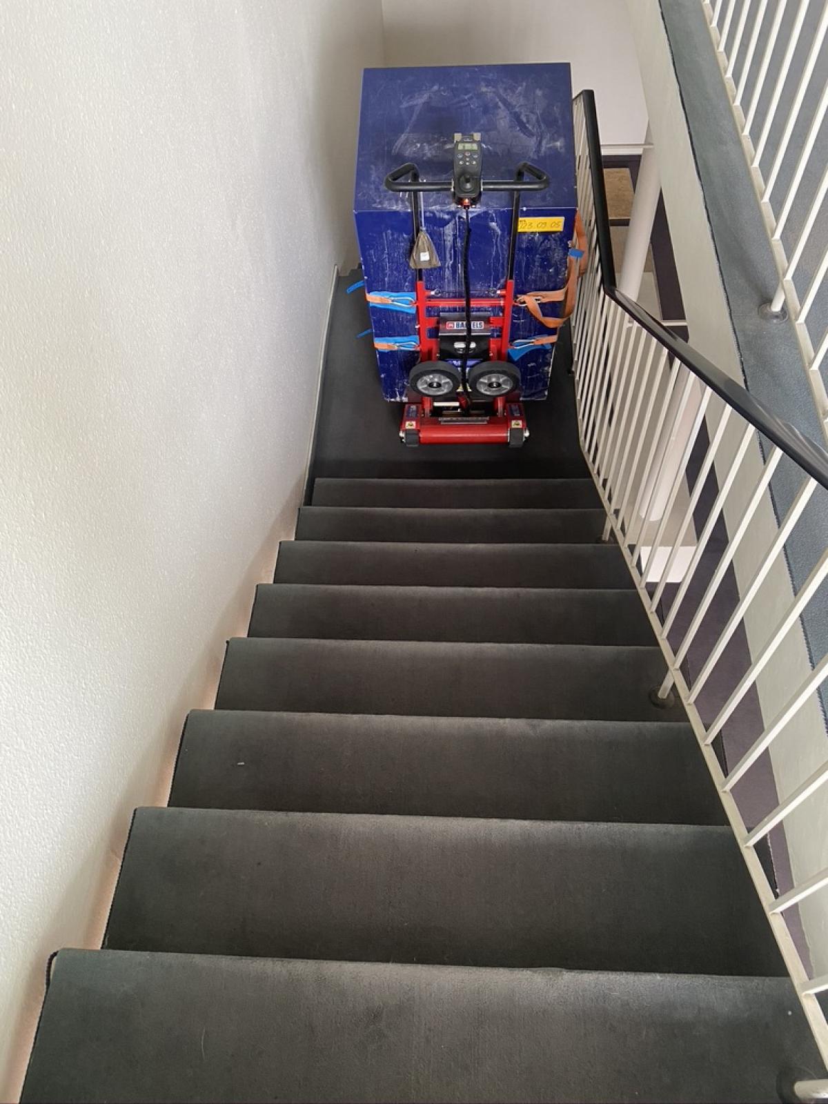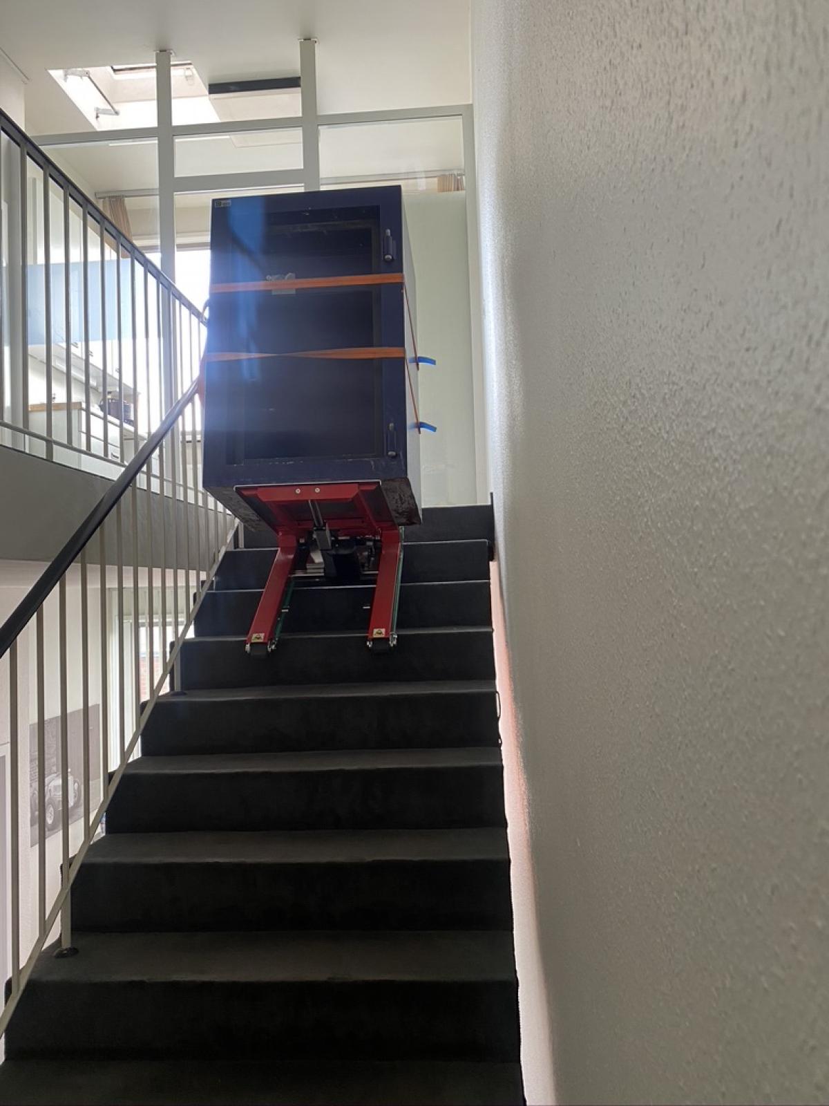 Er eignet sich besonders für kompakte, eher quadratische oder gut gesicherte Transportgüter und ist ideal für enge Treppenhäuser, Wendeltreppen und Zwischenpodeste.