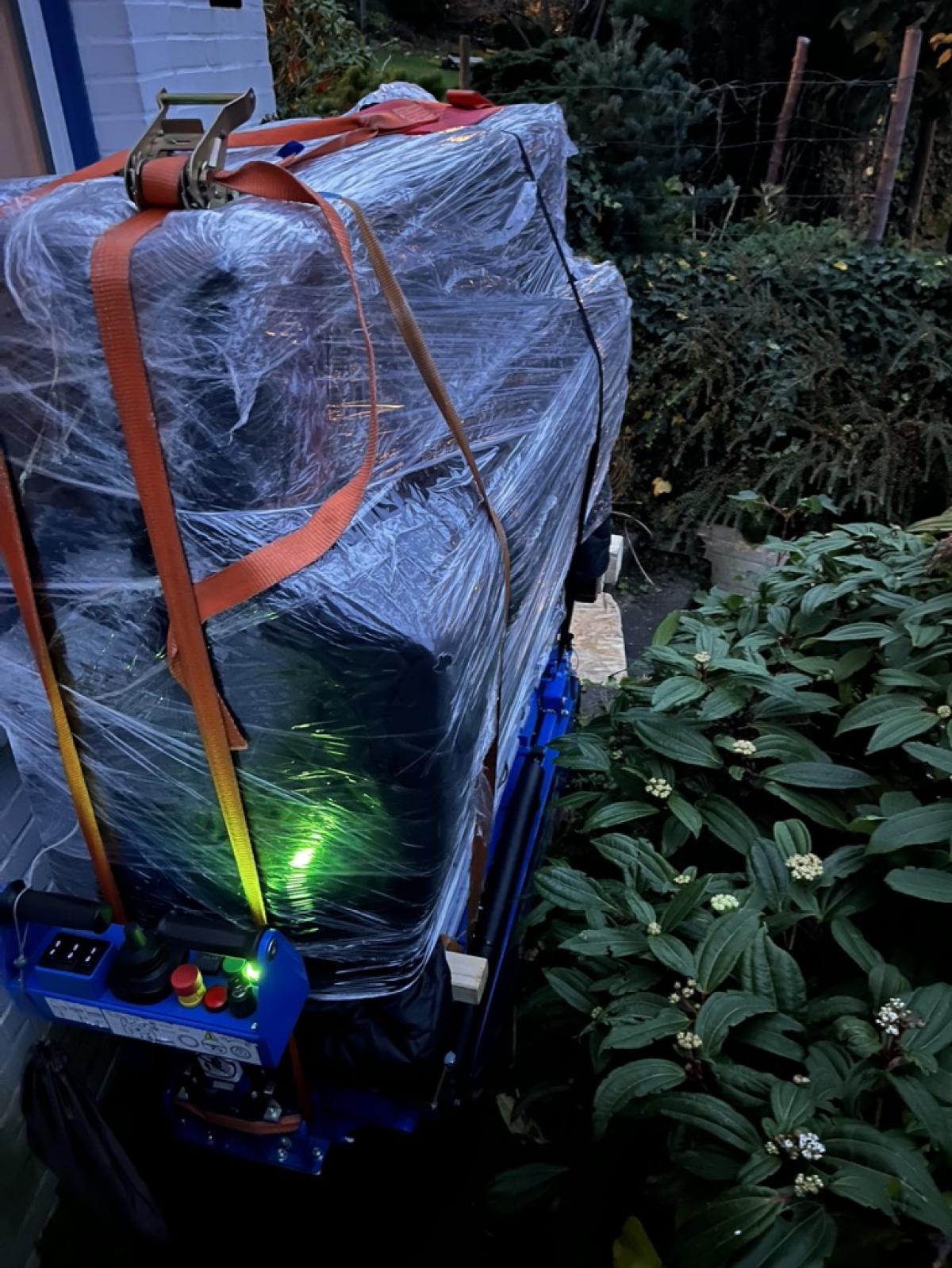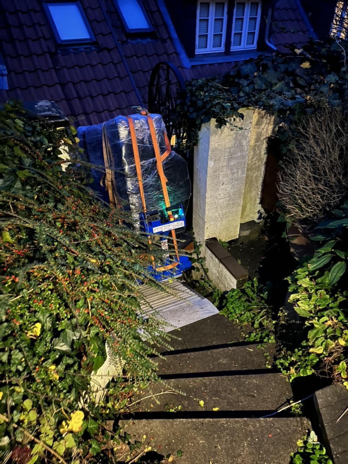 Der Treppensteiger Pianoplan „vertikal“ (Kletterkuli 600 J) ist die professionelle Lösung für schwere, unhandliche und empfindliche Transportgüter über Treppen.
