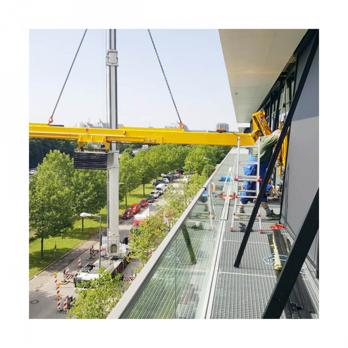 Der Überhangsauger DSMH2 1200 hebt Lasten bis 1.200 kg, völlig egal, ob vertikal oder horizontal. Mit seinem Überhang von 2,8 Metern ist er der ideale Sauger, um große Glaselemente unter Gebäudevorsprüngen zu montieren. Der kraftvolle Überhangsauger ist entweder mit einer Kabel- oder Funkfernbedienung zum Justieren des Gegengewichtes erhältlich. Dabei wird die Saugbatterie sowie die Gegengewichtsanlage elektrohydraulisch verstellt. Die Lasten können nun perfekt ausgerichtet und mühelos in die Fassade eingesetzt werden. Zudem hat er eine netzunabhängige Stromversorgung für eine Betriebsdauer von bis zu 8 Stunden und eine LED-Anzeige, die den aktuellen Ladezustand wiedergibt. Sollte ein Vakuumverlust auftreten, wird nachgepumpt und zusätzlich mit einem akustischen Signal vor dem drohenden Verlust des Vakuumdrucks gewarnt. Vakuumsauger und Glassauger von Uplifter können Sie übrigens mieten oder kaufen.