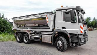 Mit der besonders effektiven Isolierung bleibt die heiße Fracht länger auf Einbautemperatur, so können auch mehrere Kleinbaustellen problemfrei angefahren werden. Die Hardox Innenmulde sowie die Edelstahl-Außenverkleidungen gewährleisten Stabilität und eine lange Haltbarkeit. Ein Zusatzeffekt dabei ist ein ausgezeichneter Kondensat,- und Korrosionsschutz und durch das neue Sicherheitsbedienkonzept (Kein Mann beim Entladevorgang im Kippbereich des Fahrzeugs) werden auch die Vorgaben der Berufsgenossenschaft für den Kipperbetrieb erfüllt.