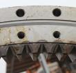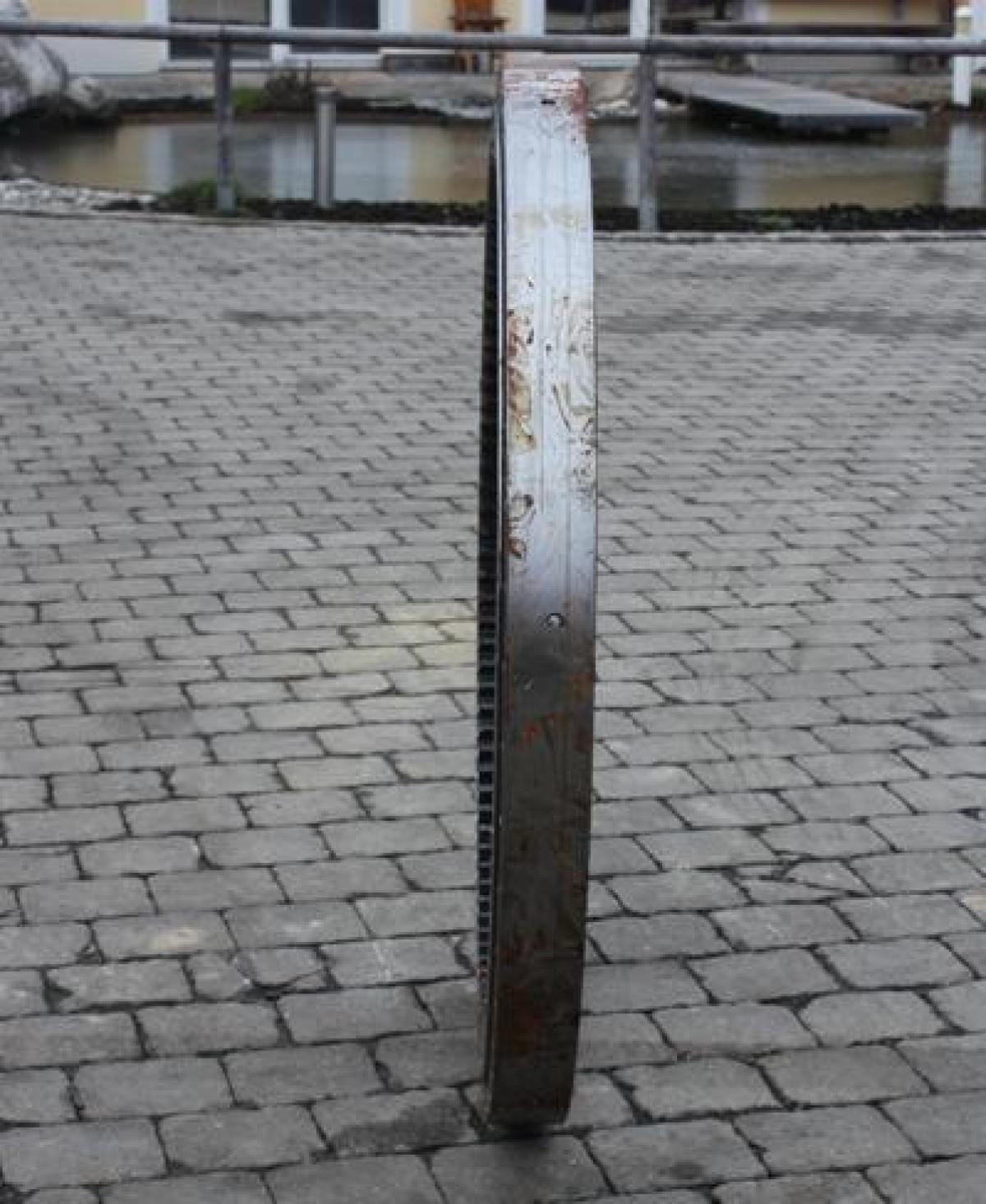 Drehkranz aus Atlas 1704 Bagger, innenverzahnt, passt z.t. auf 1804, Atlas Ersatzteilnummer: 3693047, D aussen 1305 mm, D innen auf Zähne 1070 mm, 106 Zähne, 48 Löcher aussen ohne Gewinde D 18 mm, 48 Löcher innen mit Gewinde M 16, Kranz Aussenring D von Loch Mitte - Mitte 1260 mm, Kranz Innenring D von Loch Mitte - Mitte 1160 mm,