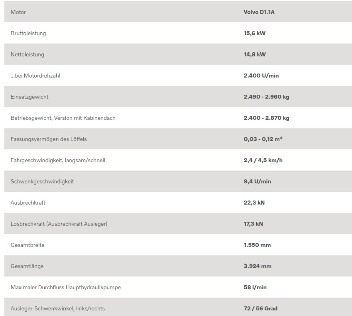 | Betriebsgewicht (min/max) | 2960 Kg |