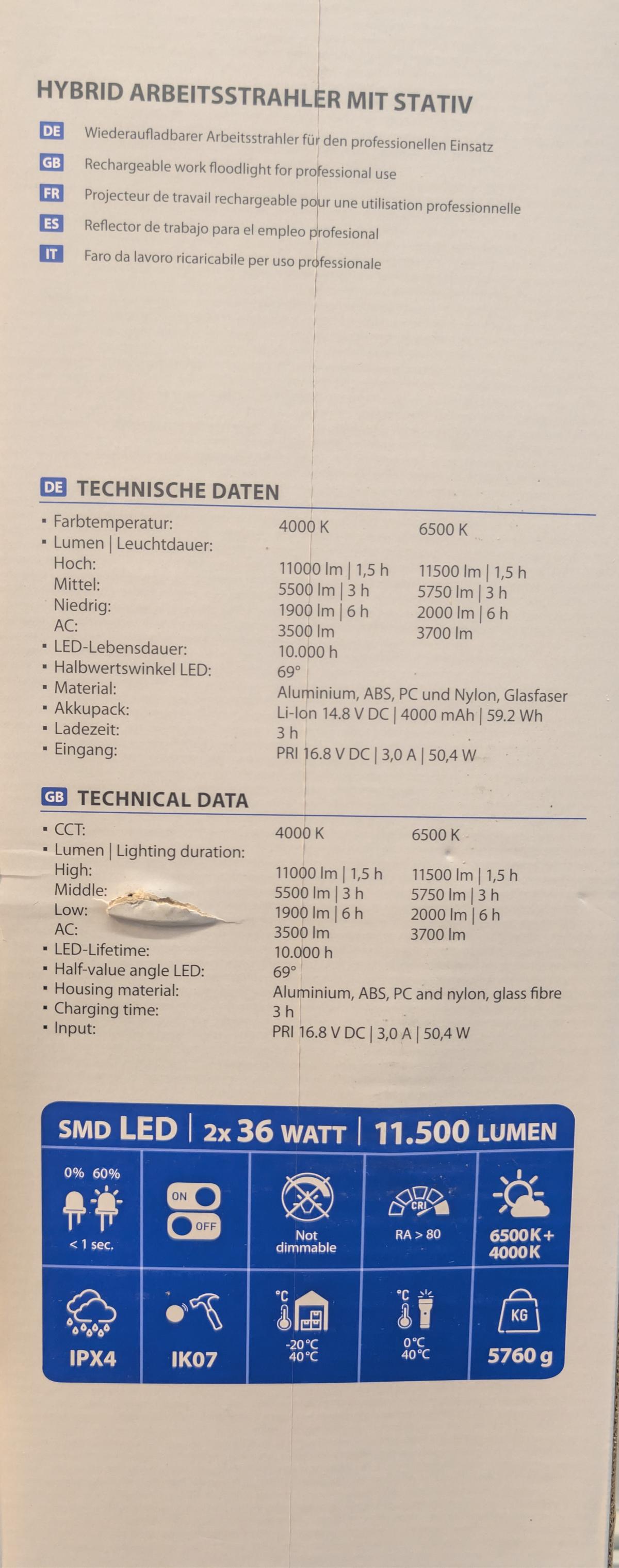 | Modell | Hybrid Arbeitsstrahler mit Stativ |