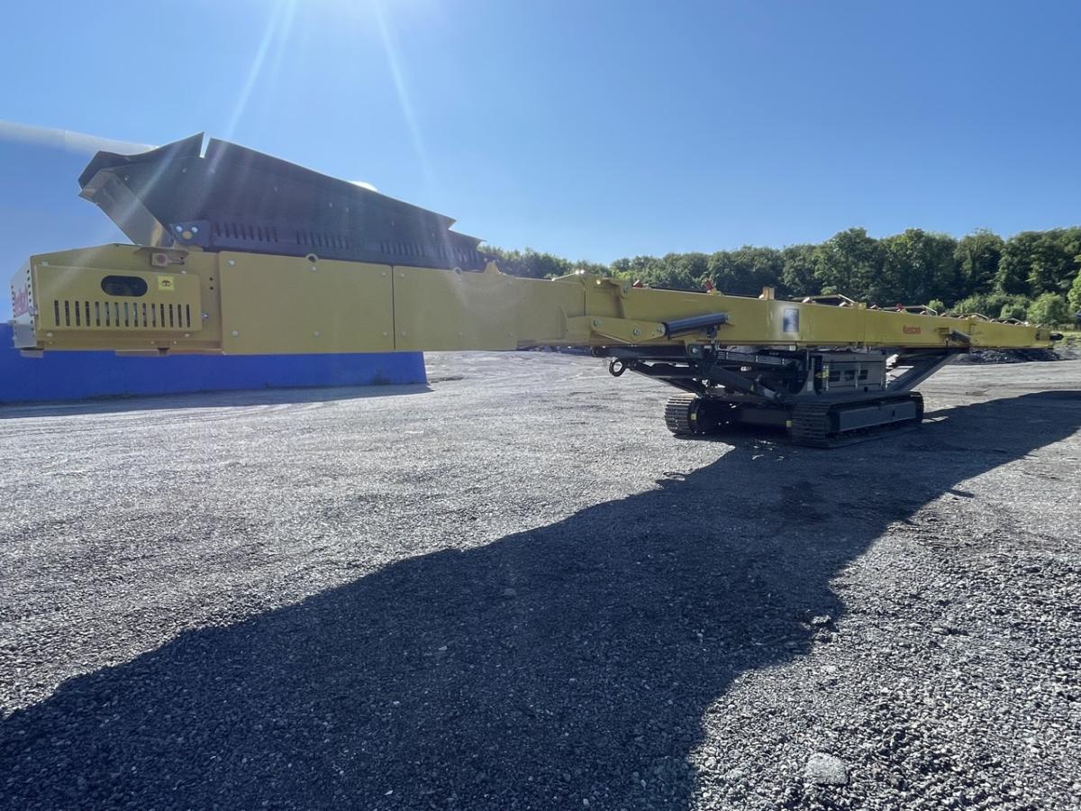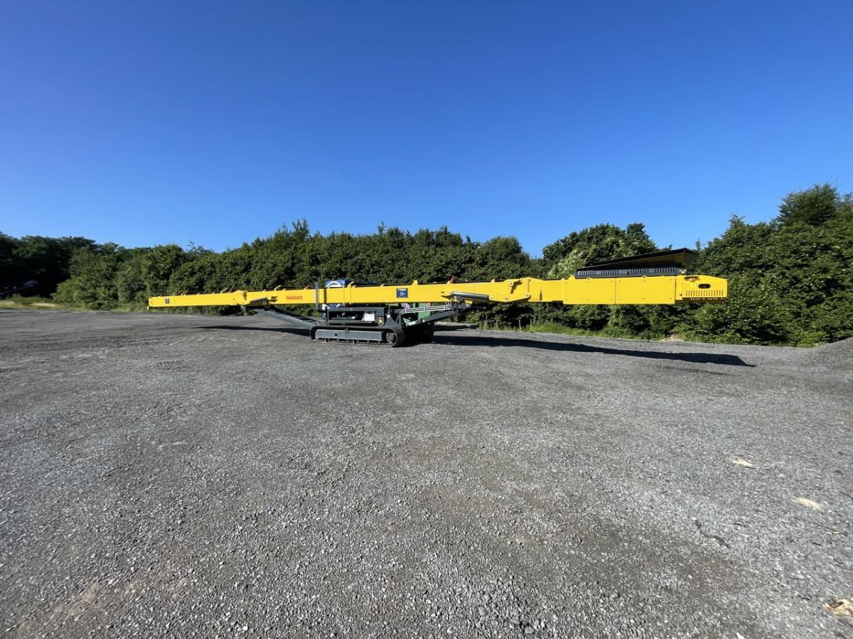 Das raupenmobile KEESTRACK Haldenband S5 mit 23 m Länge und 9,5 m Abwurfhöhe, mit einer Gurtbreite von 1.000 mm und einem Gewicht von 12,5 t kann bis zu 2.500 t Material aufgehalden, selbstverständlich mit „load-sensing“-Hydrauliksystem.