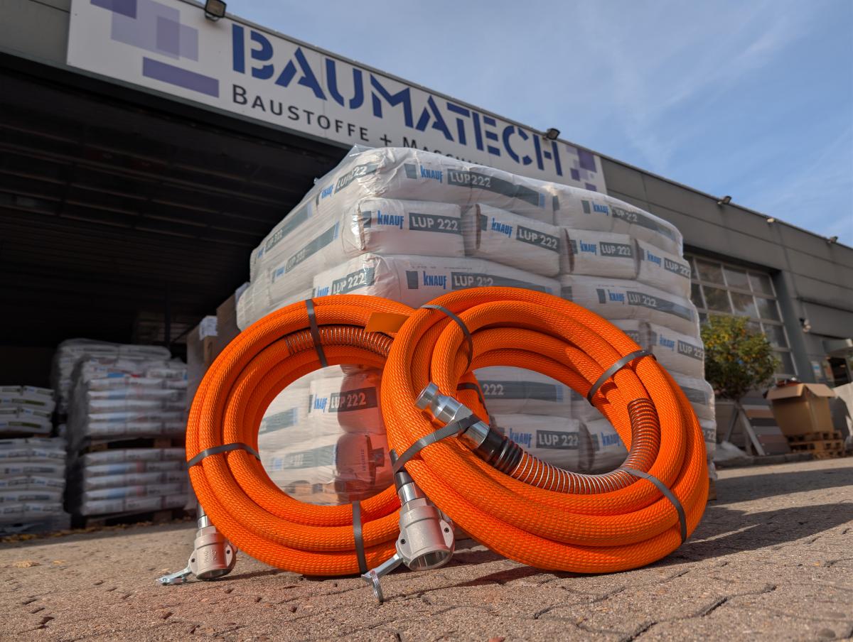 Vielseitige Anwendung: Der Mörtelschlauch ist für zahlreiche Putzmaschinenmodelle geeignet und kann für diverse Materialien eingesetzt werden.