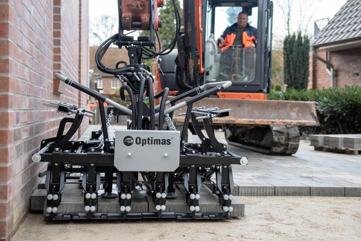 Anbaugerät für die maschinelle Pflasterverlegung.