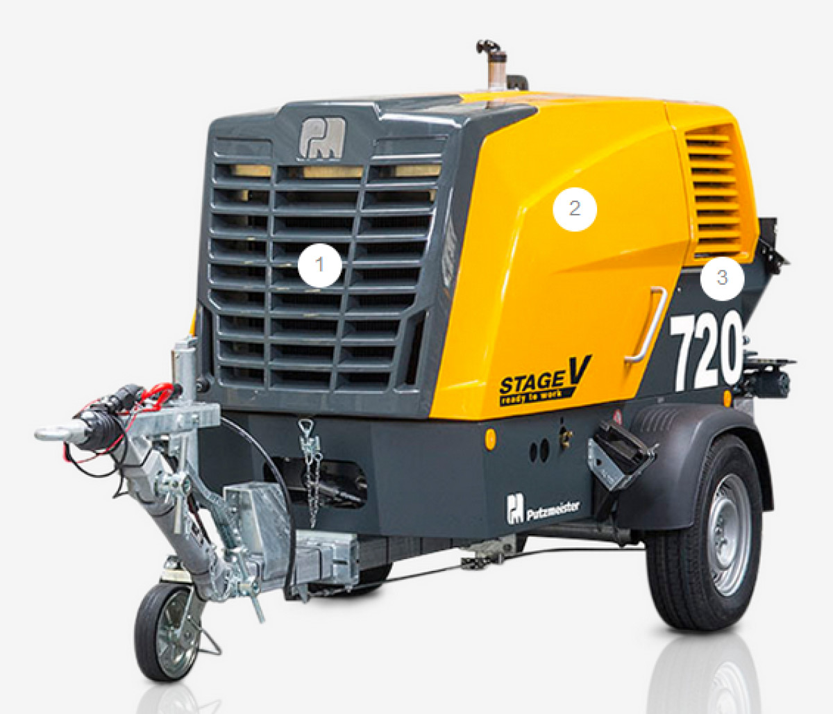 Fördertrichter 250 l / 280 l (mit Gummi-Aufsatzkragen), Fördermenge 3 – 21 m³/h, Förderdruck max. 80 bar Förderentfernung*bis 300 m weit, bis 100 m hoch bei Spritzbeton/Feinbeton bis 100 m weit und bis 80 m hoch, Antrieb 3-Zylinder Deutz-Dieselmotor mit Turboaufladung, 44,5 kW (Abgasstufe Stage V) Kolbenpumpe 2-Zylinder hydraulisch Kolbenhub 700 mm, Förderzylinder (Ø) 150 mm, Druckstutzenkupplung 4,5 ” Hubzahl max. 29 Hübe/min Gewicht 2050 kg, Länge × Breite × Höhe 4800 mm x 1491 mm x 1916 mm Befüllhöhe 1324 mm Größtkorn 16 mm Maschinentyp Anhängerpumpe Fahrwerk Straßenfahrwerk * Die Leistungsdaten sind Richt- bzw. Erfahrungswerte je nach Materialqualität, Materialzusammensetzung und Materialkonsistenz. Maßgeblich sind auch der Pumpenzustand und der Förderschlauchdurchmesser.