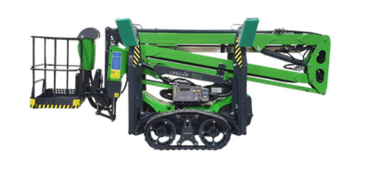 Raupenbühne Avant Leguan L 190, Höhe max. 19 m, 9,8 m max. seitliche Reichweite, Tragkraft 230 kg Gewicht 2.660 kg Transportlänge 5.100 mm Transportbreite 1.330 mm Transporthöhe 2.010 mm, Steigfähigkeit 40% (22º). Kubota 14 PS Diesel oder 230 V / 2.2 kW elektro