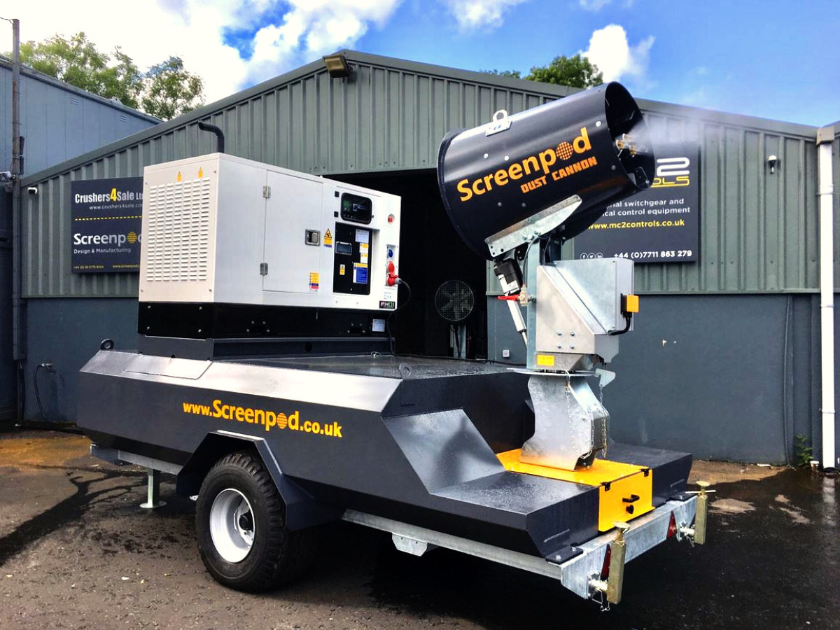 » Auf einem Anhänger montierte, straßenzugelassene Staubkanone