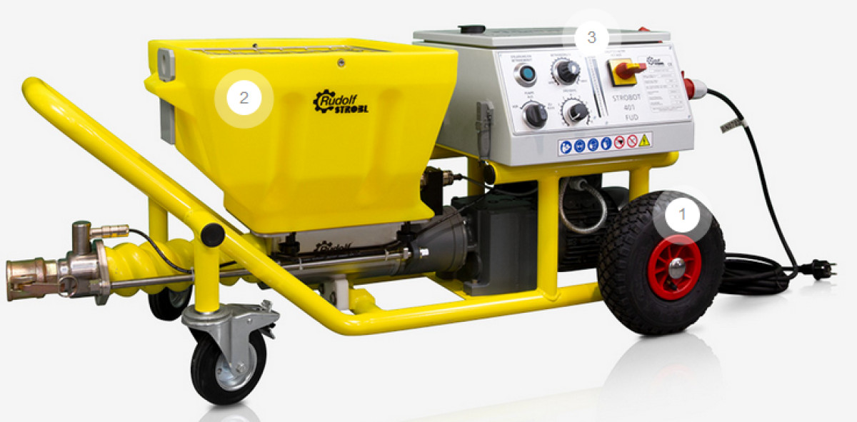 Schneckenpumpe STROBOT 401 RS/RSD Verputzmaschine für Nassmörtel und Fertigputz fördern sowie auftragen. Körnung 5 mm.